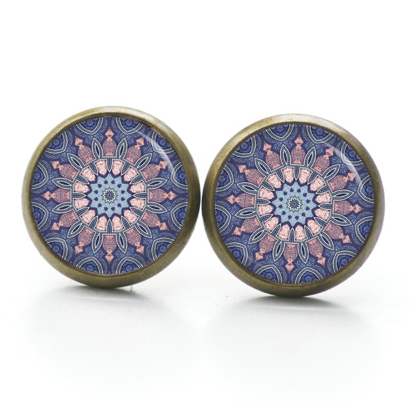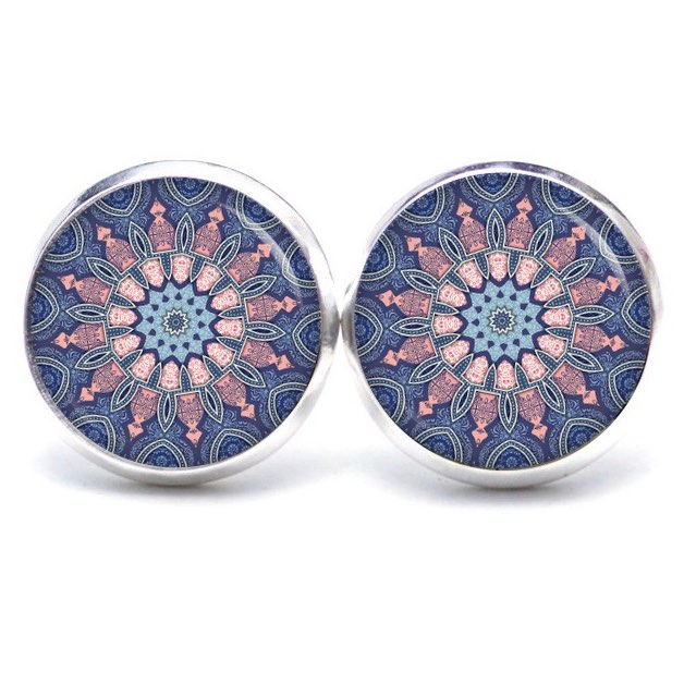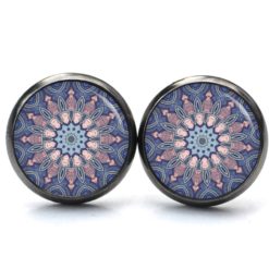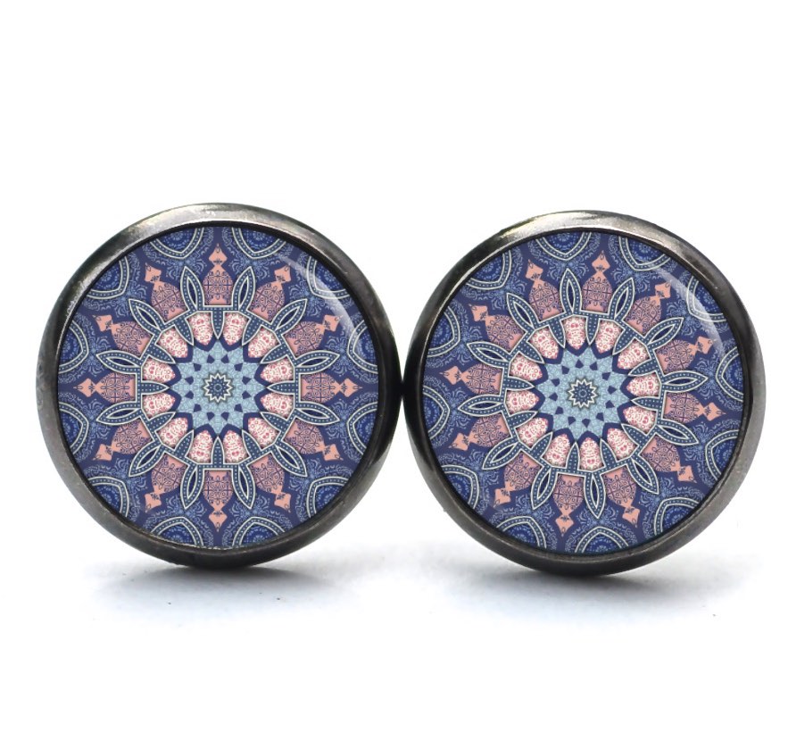 Druckknopf Ohrstecker Ohrhänger Clipse Muster Mandala Mosaik in blau und rosa