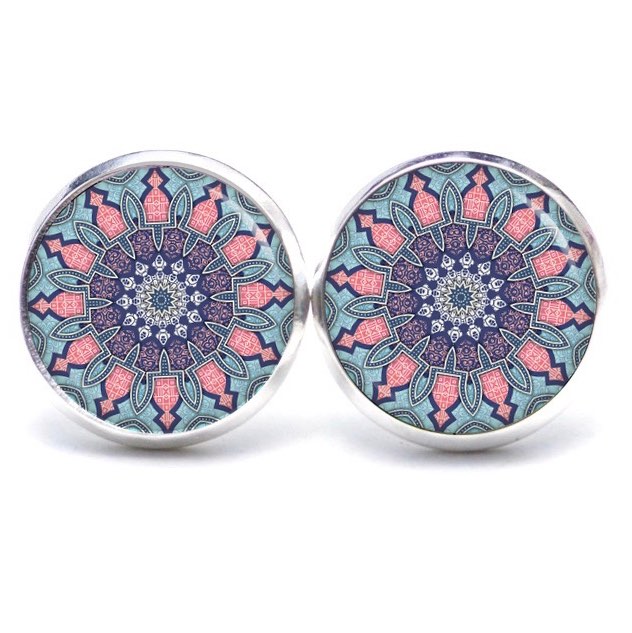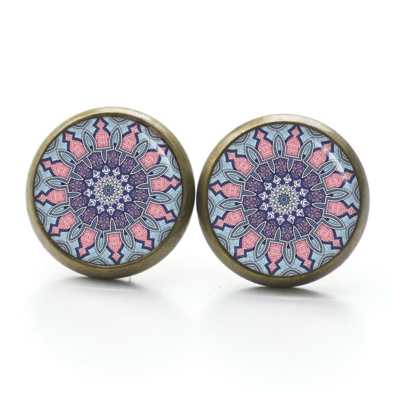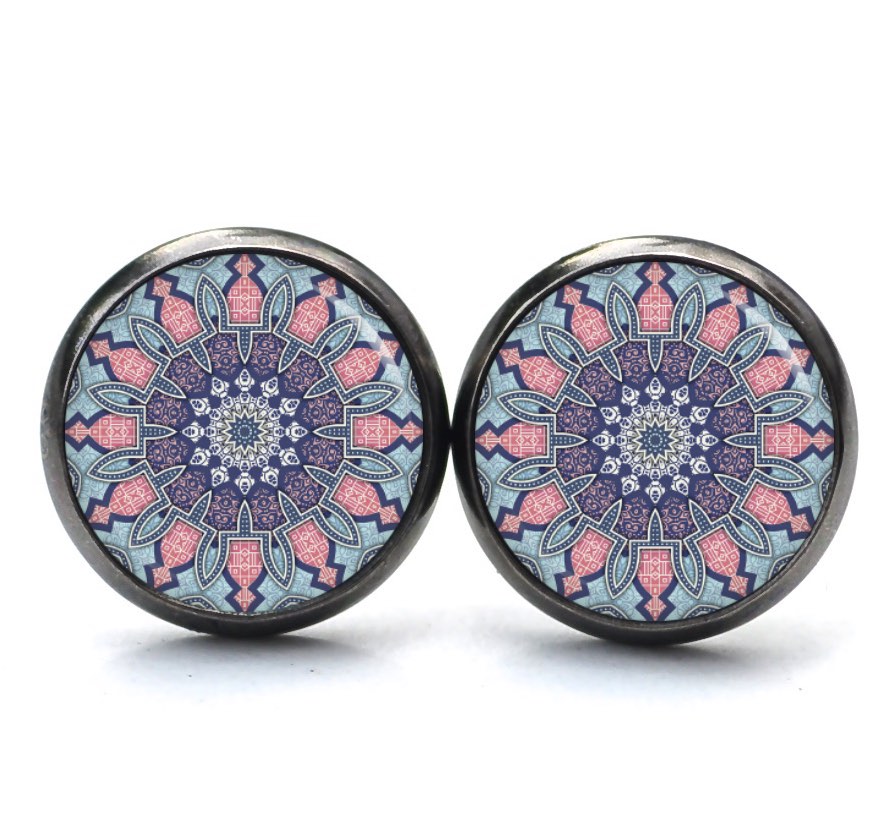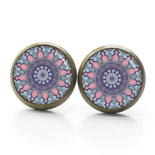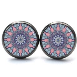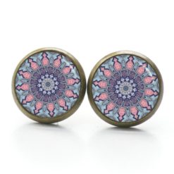 Druckknopf Ohrstecker Ohrhänger Clipse Muster Mandala Mosaik in hellblau und rosa