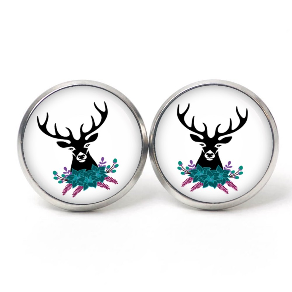 Druckknopf Ohrstecker Ohrhänger Clipse Oktoberfest Hirsch türkis u rosa
