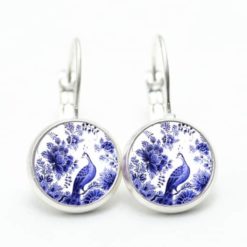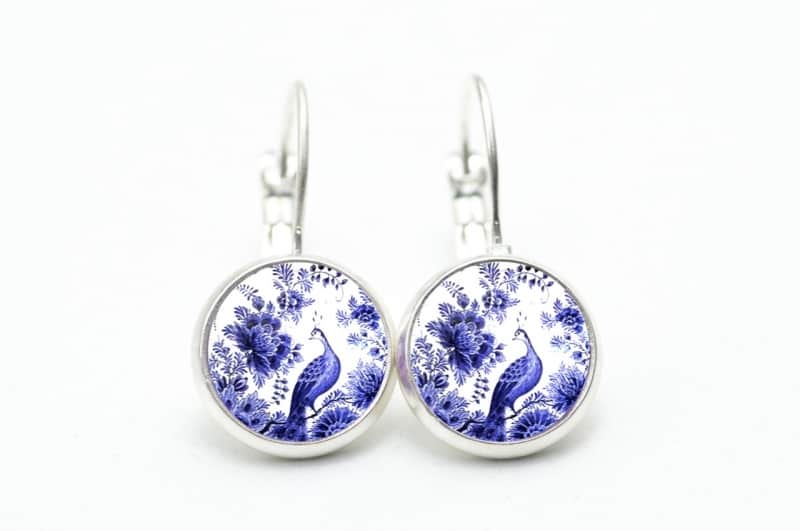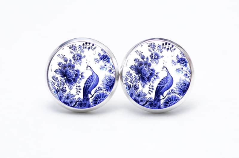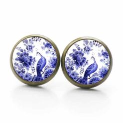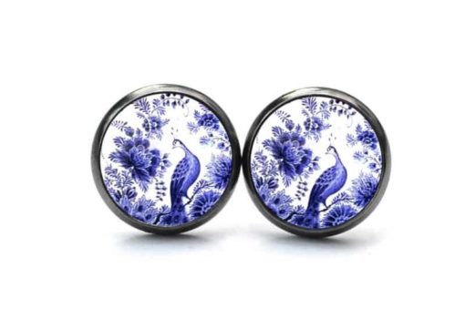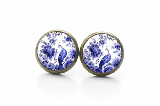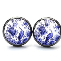 Druckknopf / Ohrstecker / Ohrhänger Pfau mit blauen Blumen