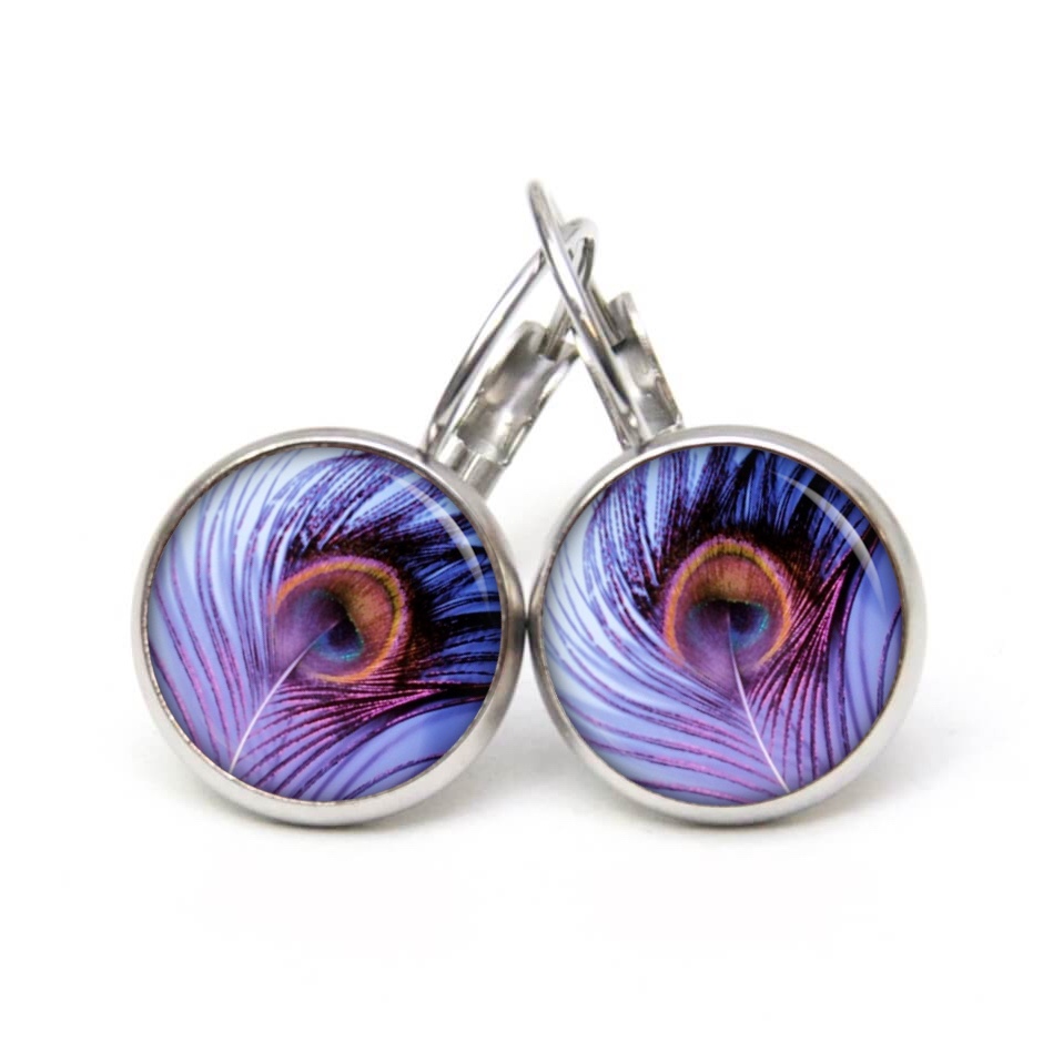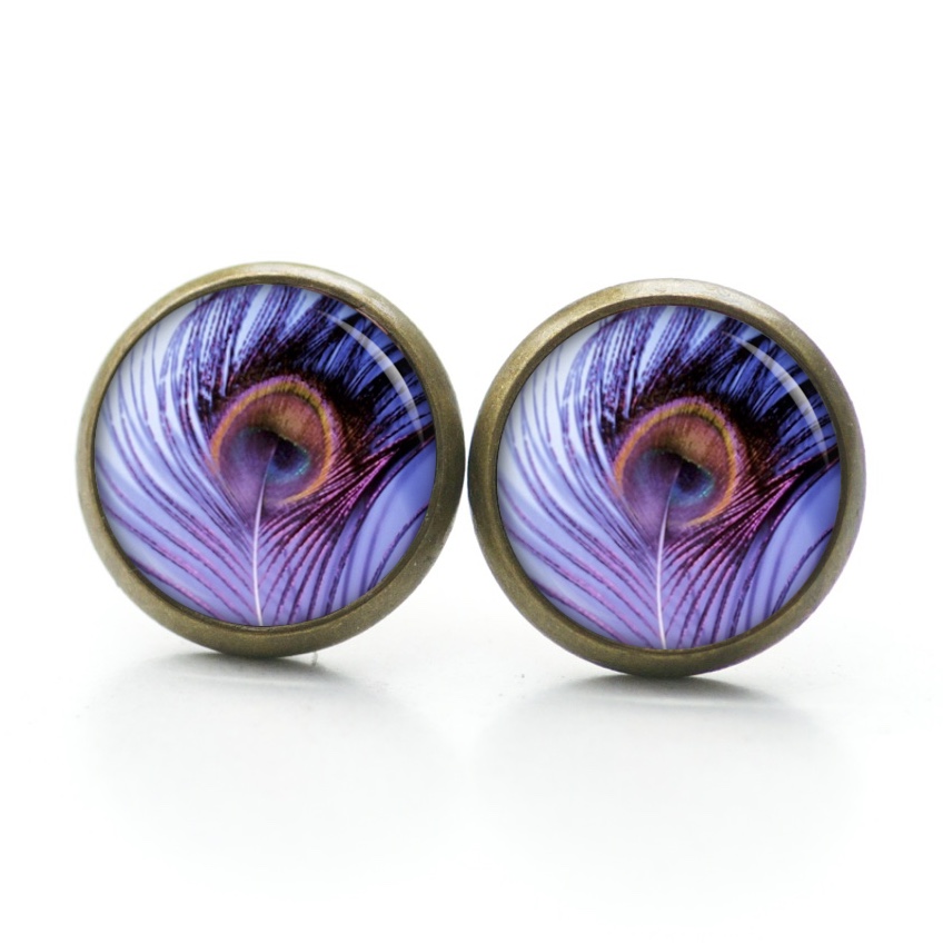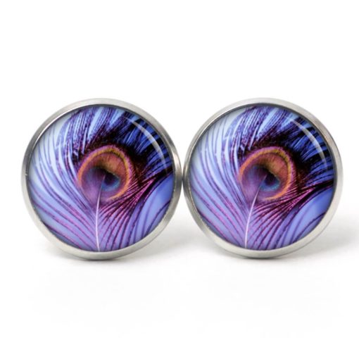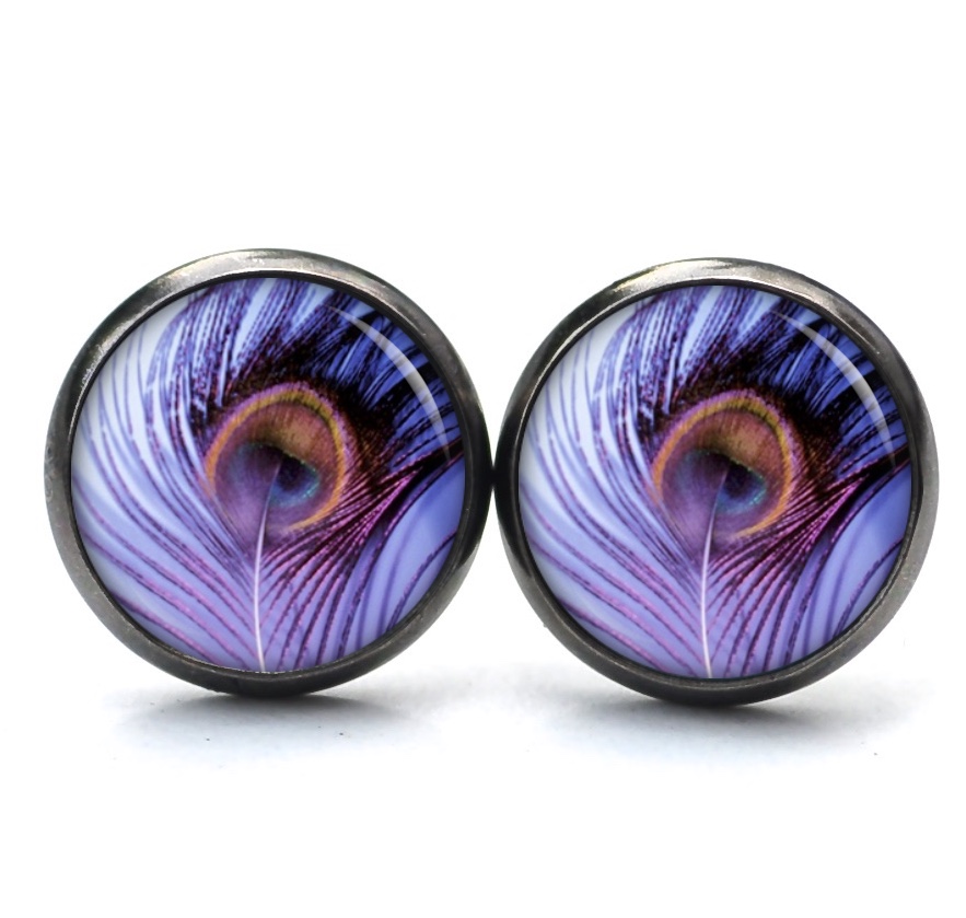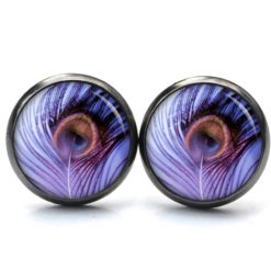 Druckknopf Ohrstecker Ohrhänger Clipse Pfau Pfauenauge violett lila
