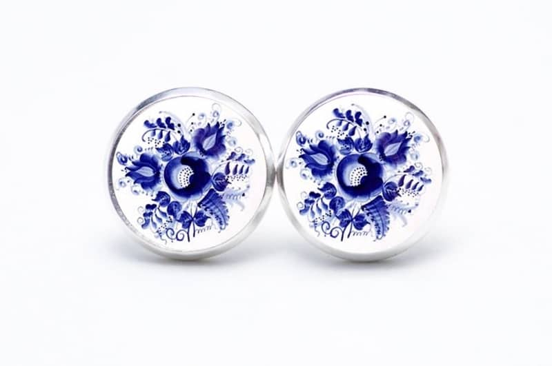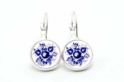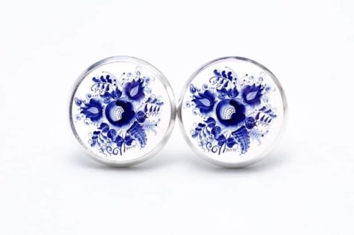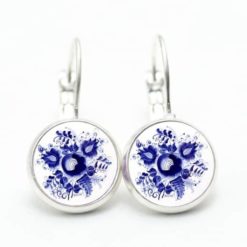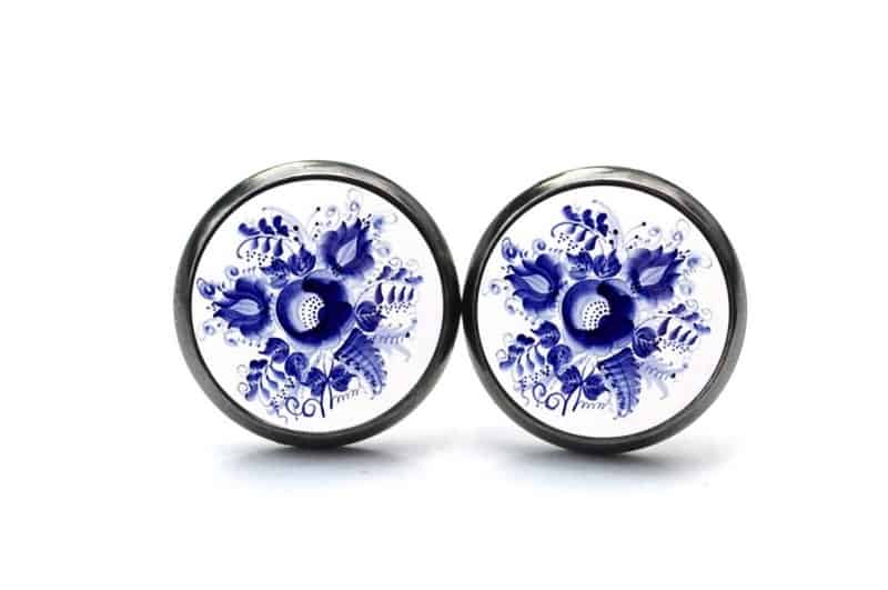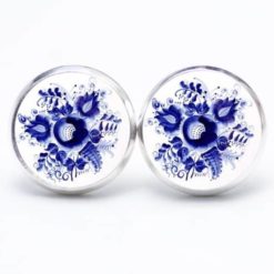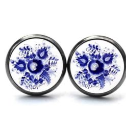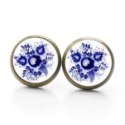Druckknopf / Ohrstecker / Ohrhänger romantische dunkelblaue Blumen im Gzhel Stil