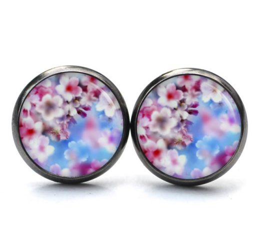 Druckknopf Ohrstecker Ohrhänger Clipse rosa Blumen Himmel auf blau