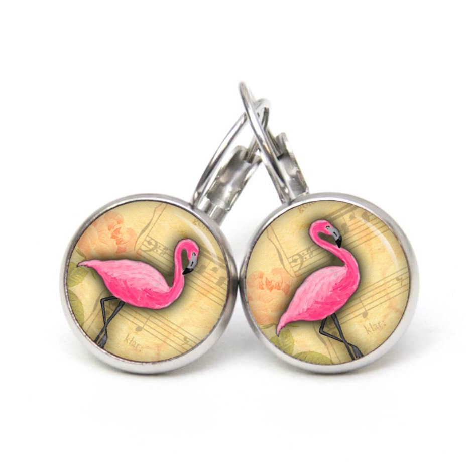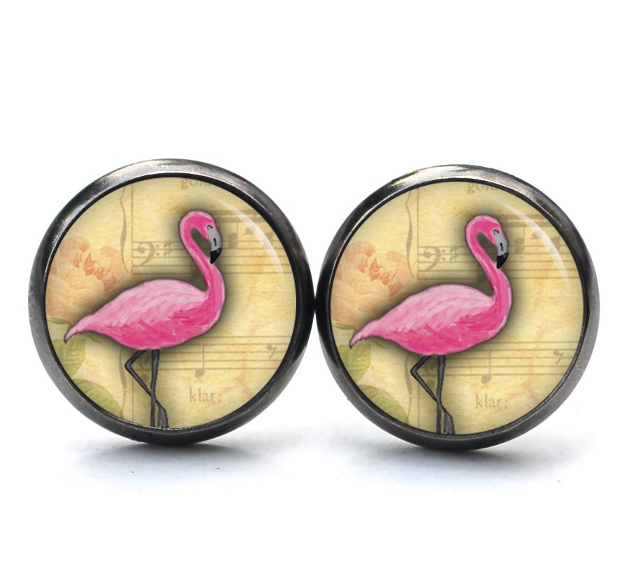 Druckknopf Ohrstecker Ohrhänger Clipse rosa Flamingo