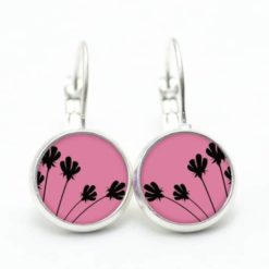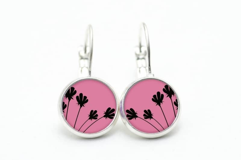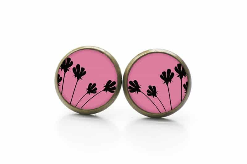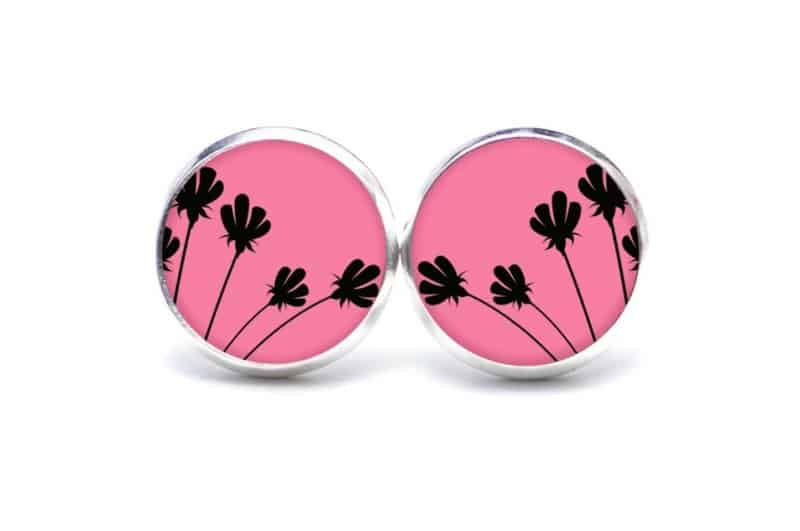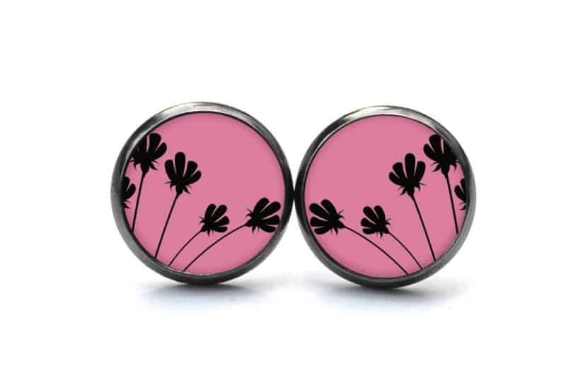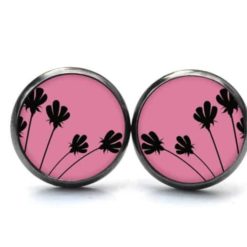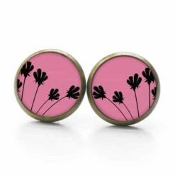Druckknopf / Ohrstecker / Ohrhänger rosa mit schwarzen zarten Blumen