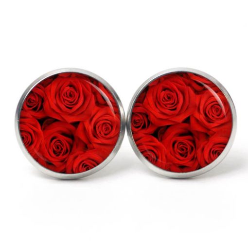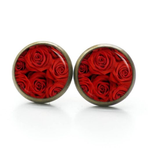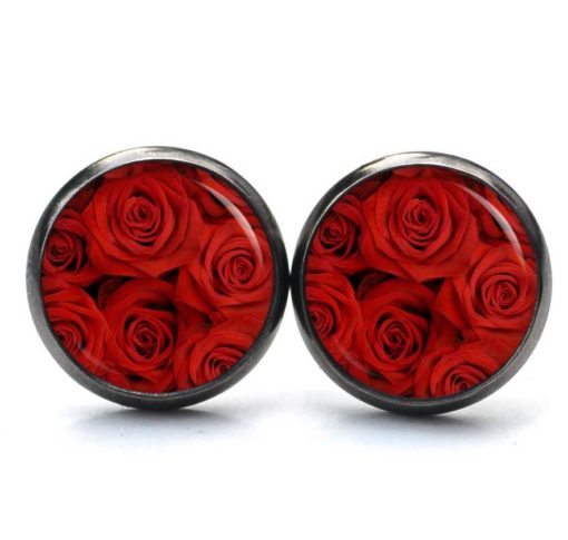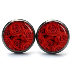 Druckknopf Ohrstecker Ohrhänger Clipse rote Rosen Valentinstag Muttertag