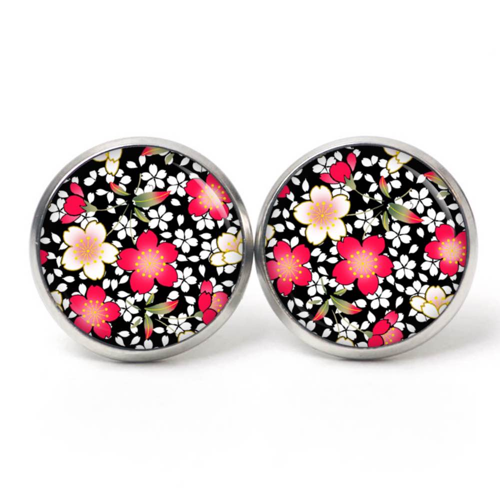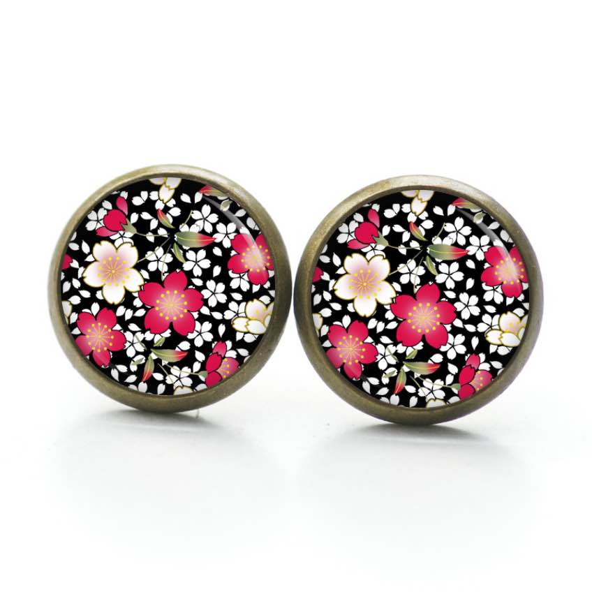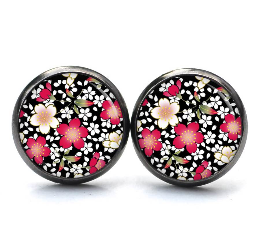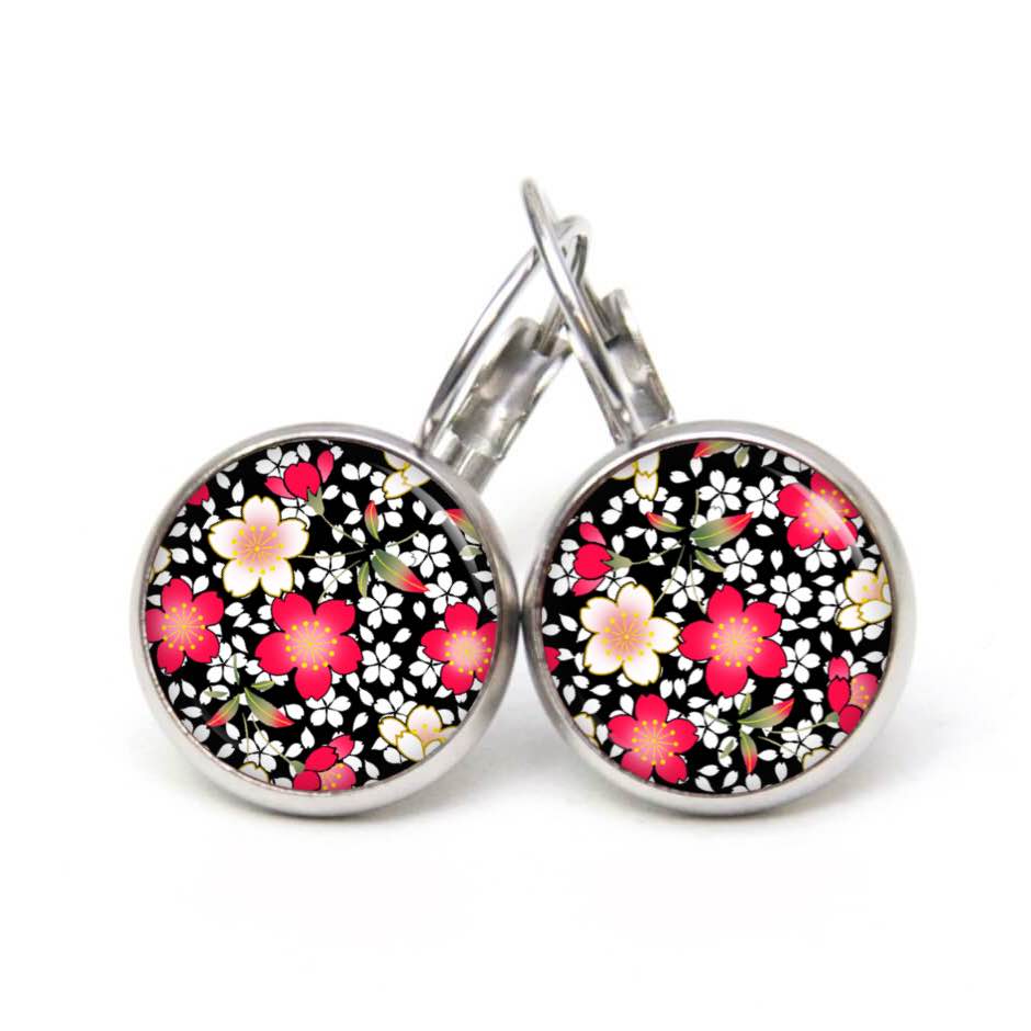 Druckknopf Ohrstecker Ohrhänger Clipse rote und gelbe Blumen