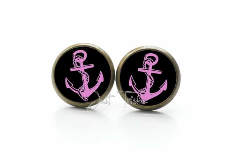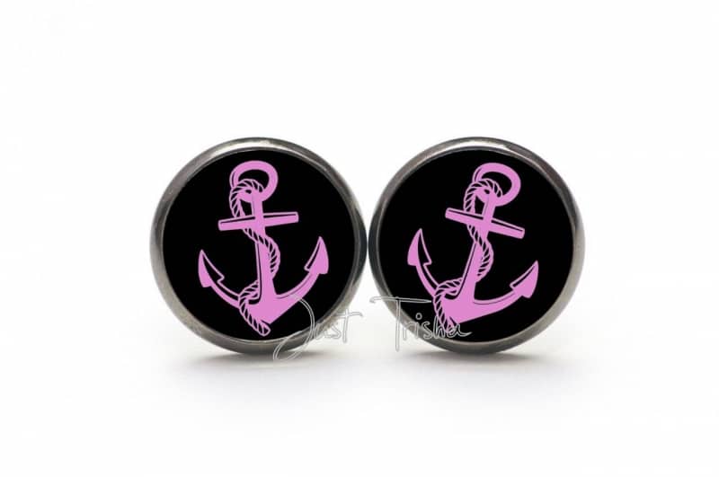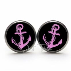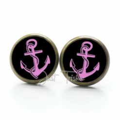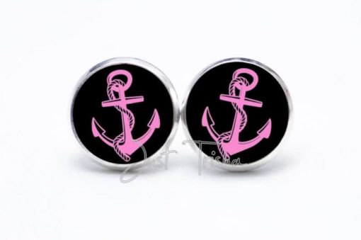 Druckknopf / Ohrstecker / Ohrhänger schwarz rosa Anker