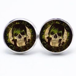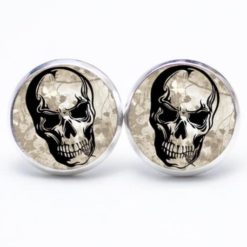 Ohrstecker, Ohrhänger, Clipse & Druckknopf – Motiv Totenkopf mit Blumen Frühling Bunt – Schmuck aus Edelstahl