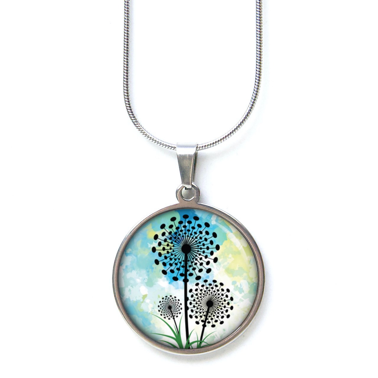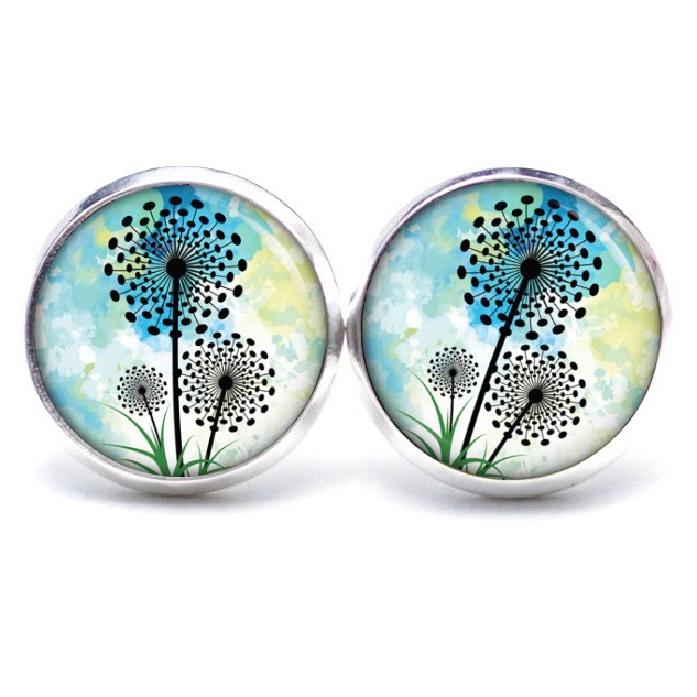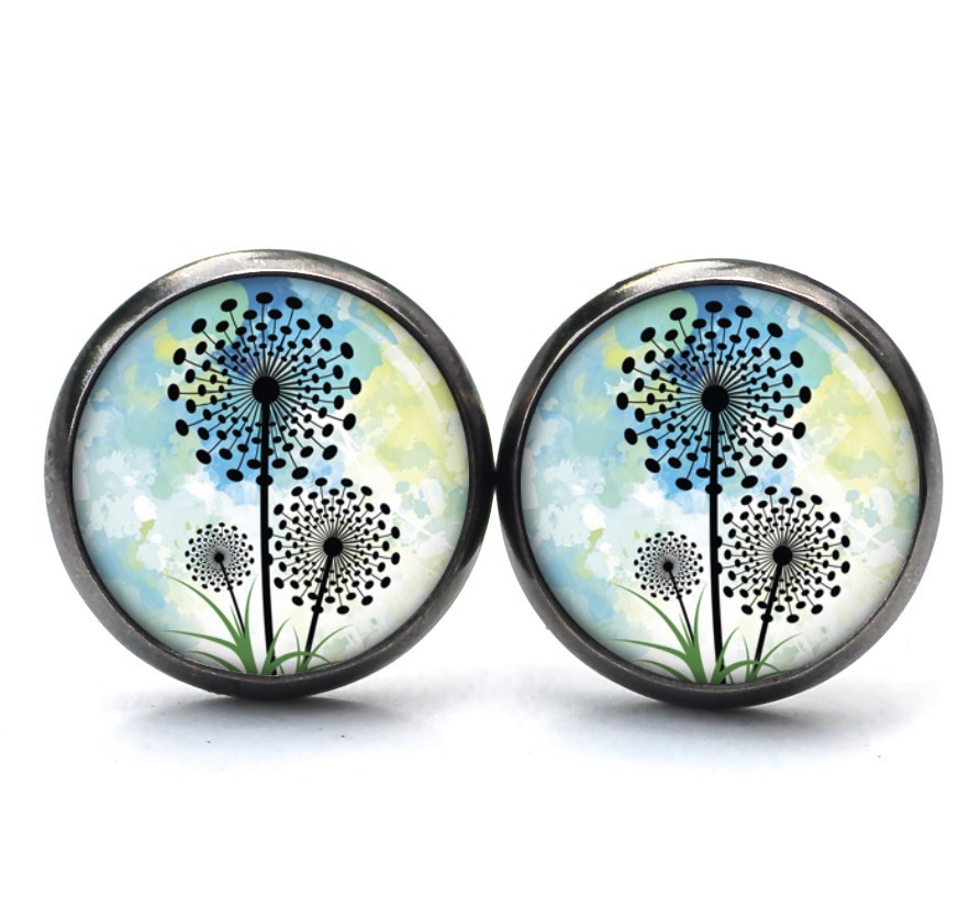 Druckknopf Ohrstecker Ohrhänger Clipse türkis grüne Pusteblume
