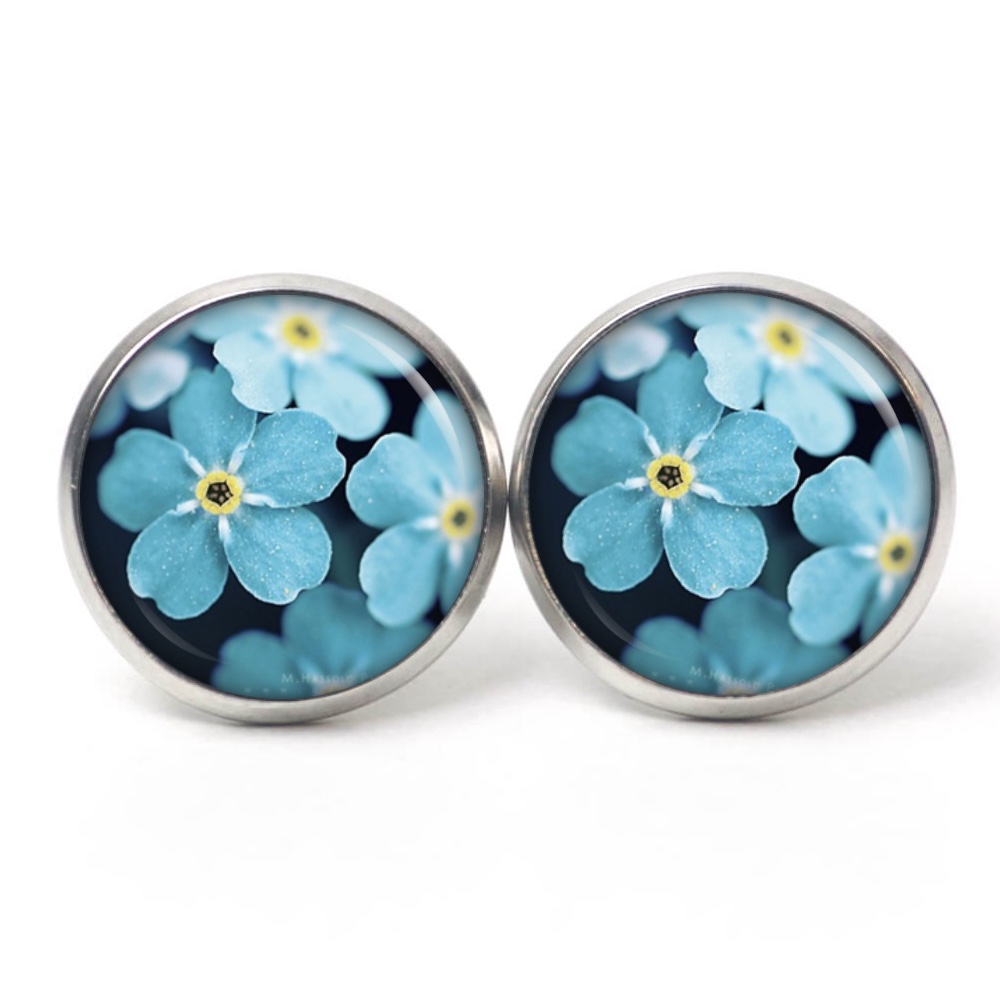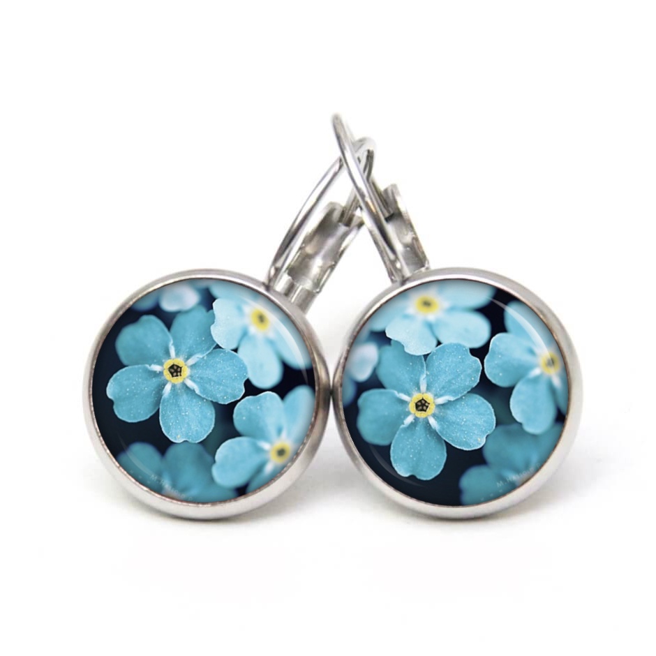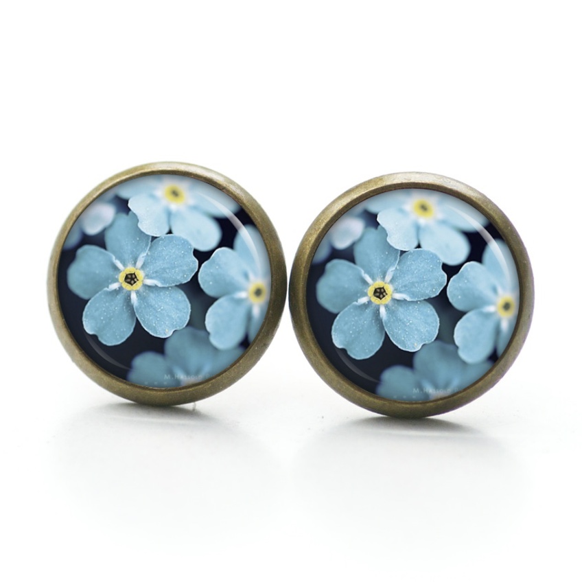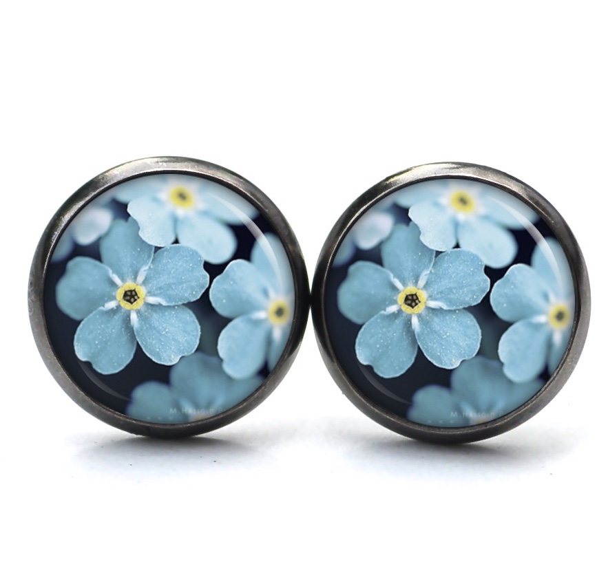 Druckknopf Ohrstecker Ohrhänger Clipse Vergissmeinnicht Blumen Blau
