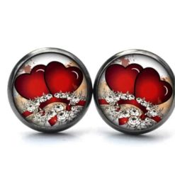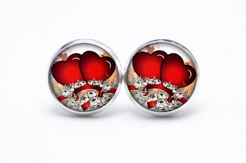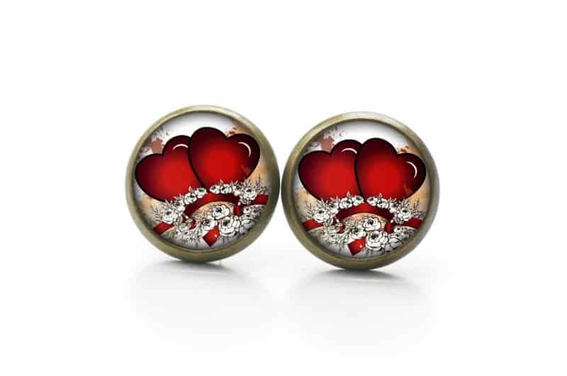 Druckknopf Ohrstecker Ohrhänger verliebte Herzen mit Blumen