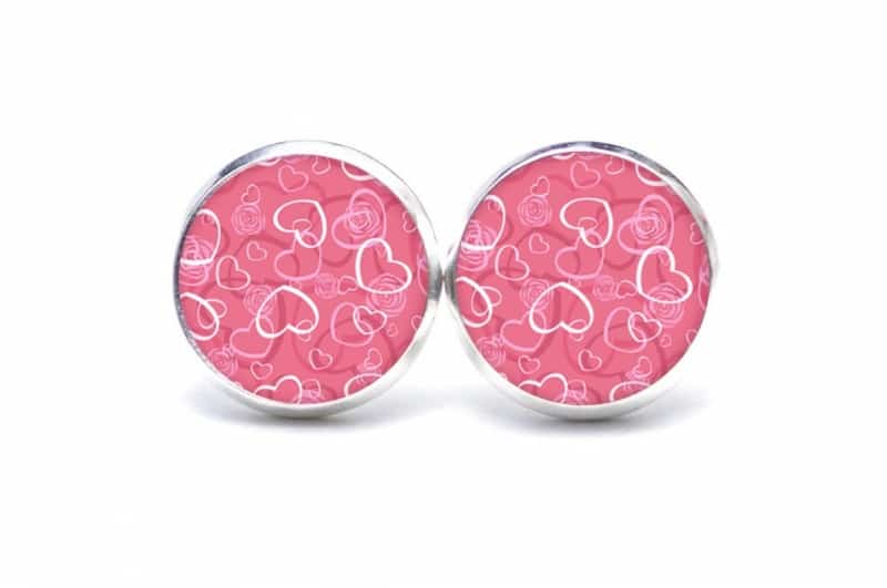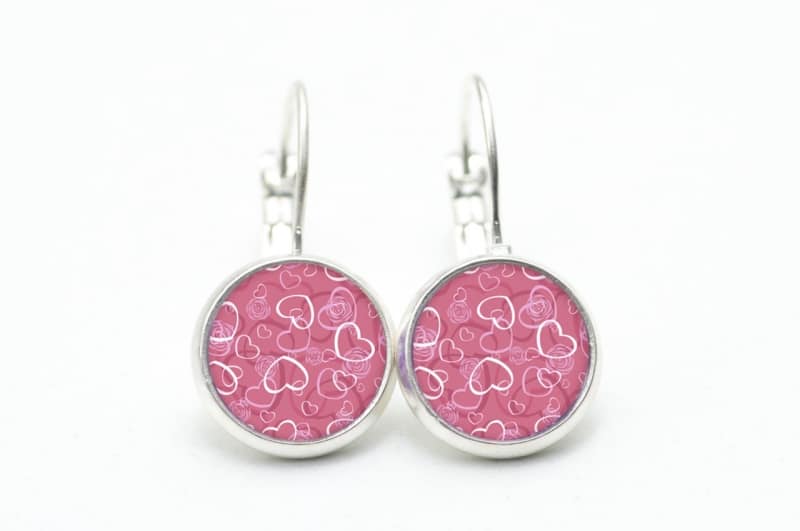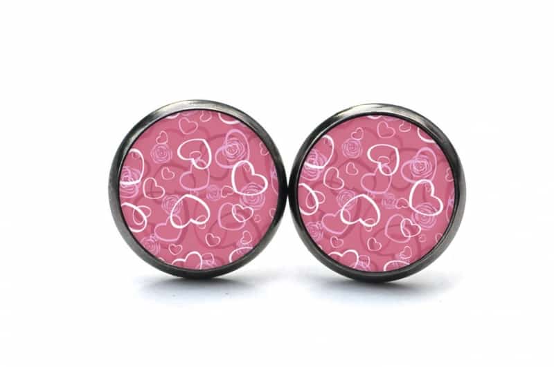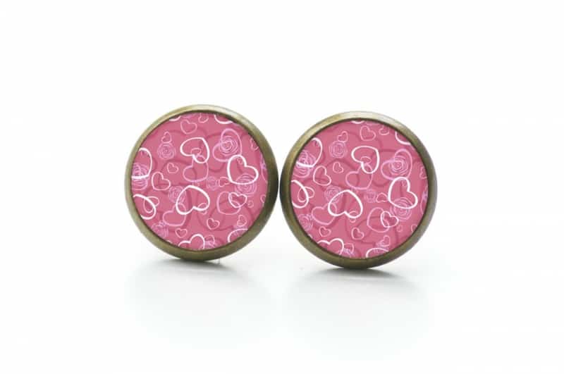 Druckknopf Ohrstecker Ohrhänger viele rosa Herzen