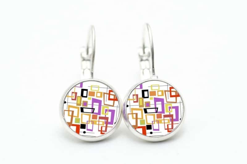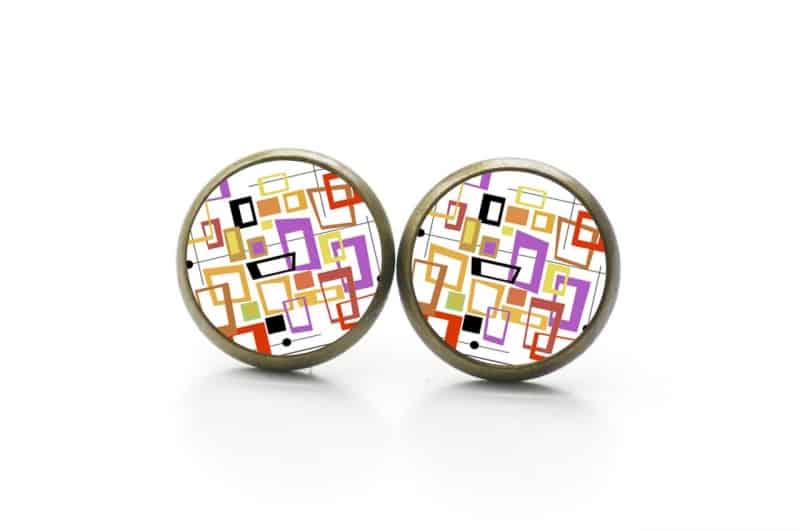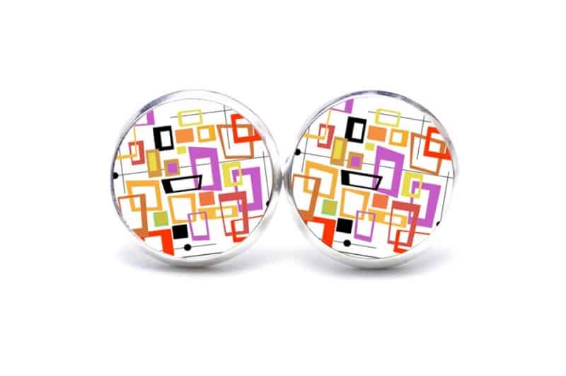 Druckknopf / Ohrstecker / Ohrhänger Vintage 60er Jahre Retro bunte Quadratische Formen