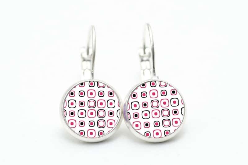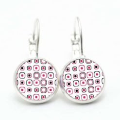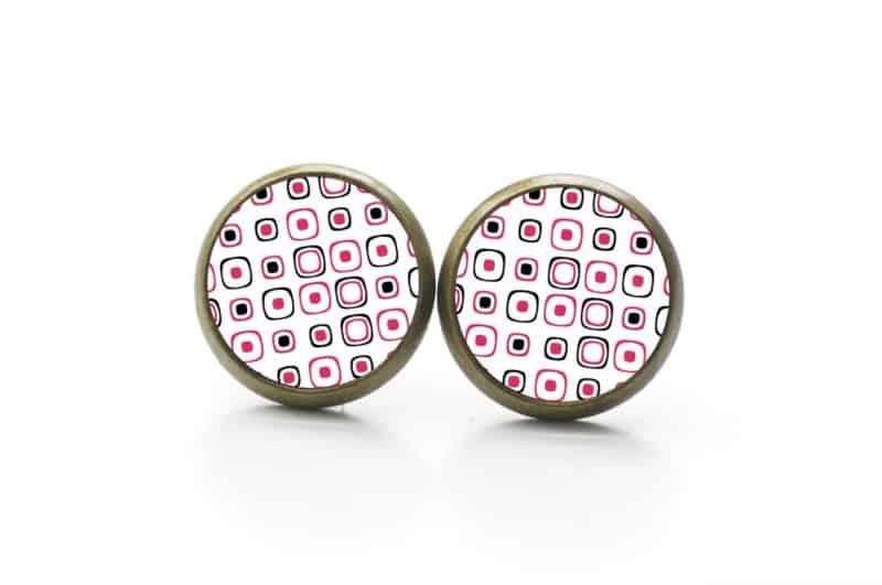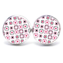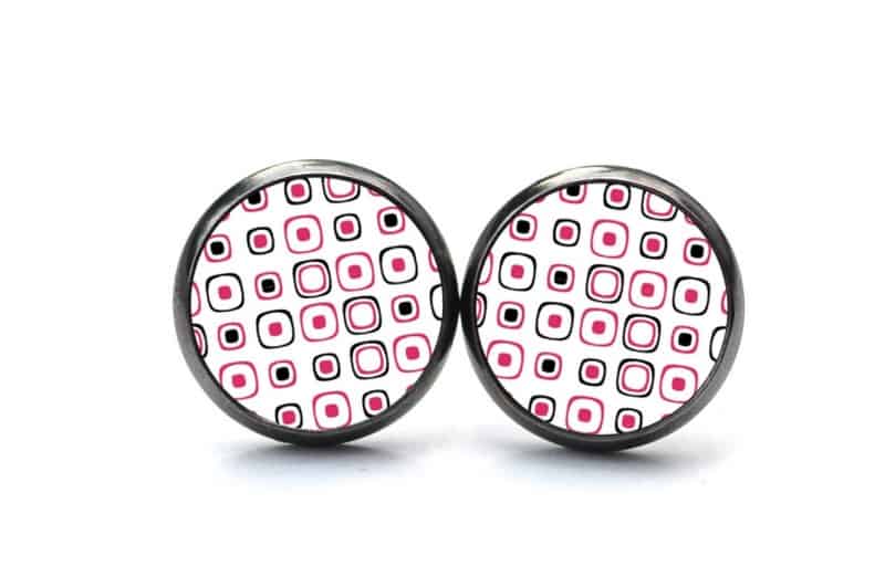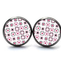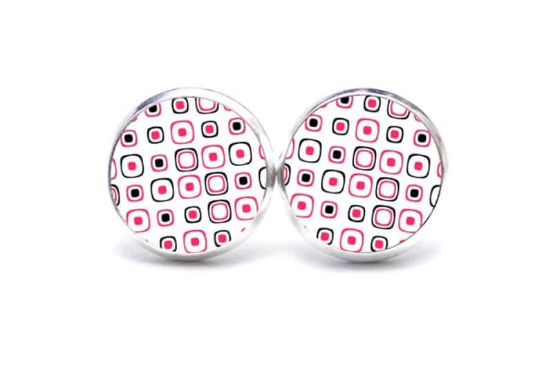 Druckknopf / Ohrstecker / Ohrhänger Vintage 60er Jahre Retro Quadratische Formen in schwarz und rosa