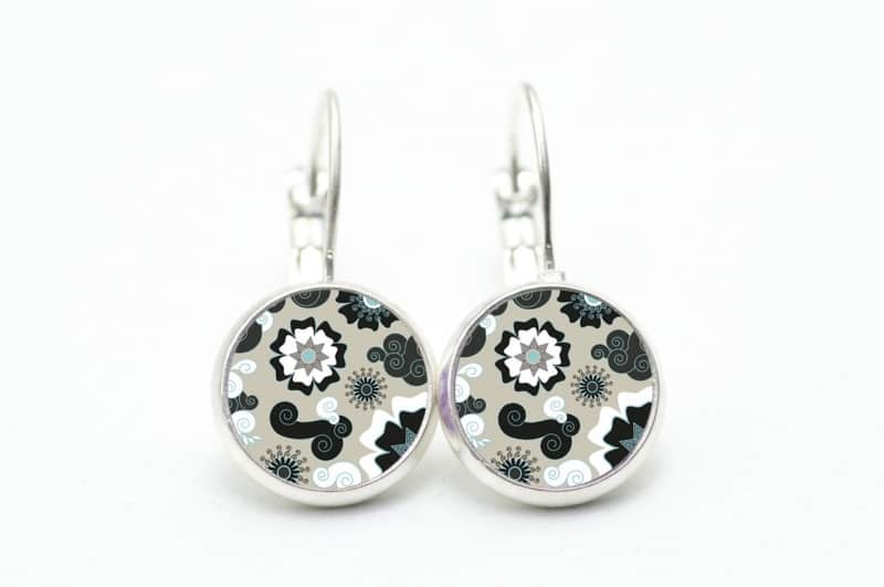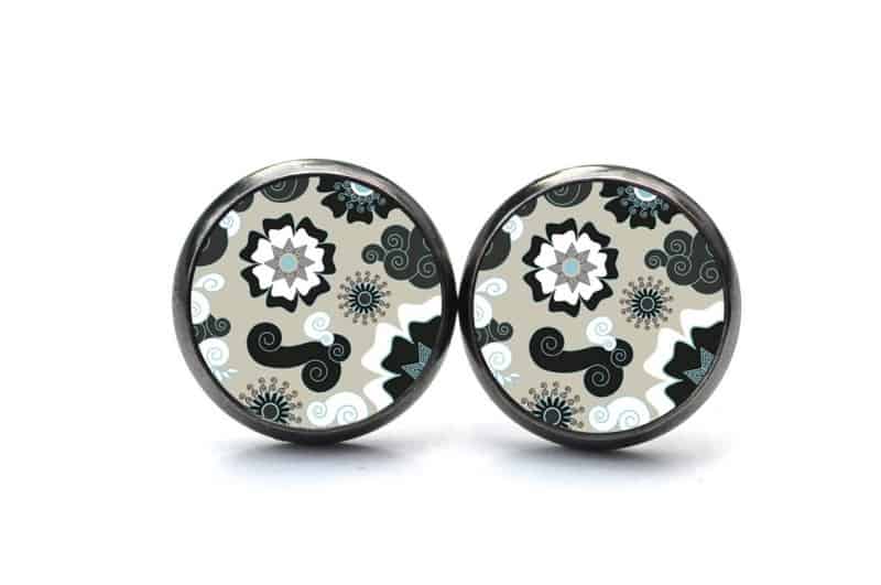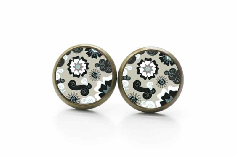 Druckknopf / Ohrstecker / Ohrhänger Vintage 60er Jahre Retro verschiedene Formen in schwarz, weiß, blau und beige