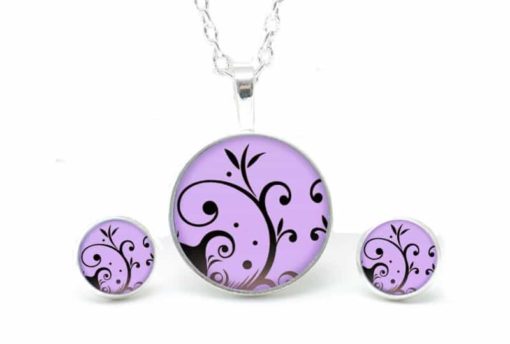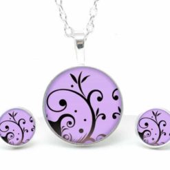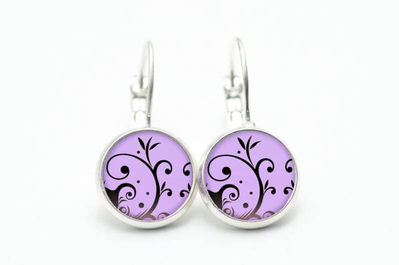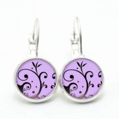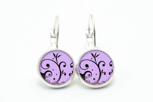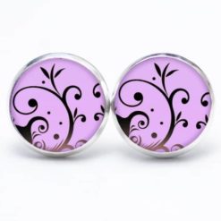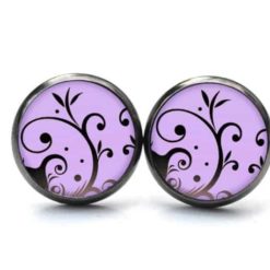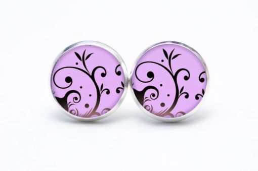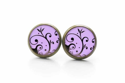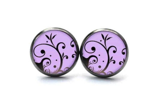 Druckknopf Ohrstecker Ohrhänger violet mit verspieltem Muster
