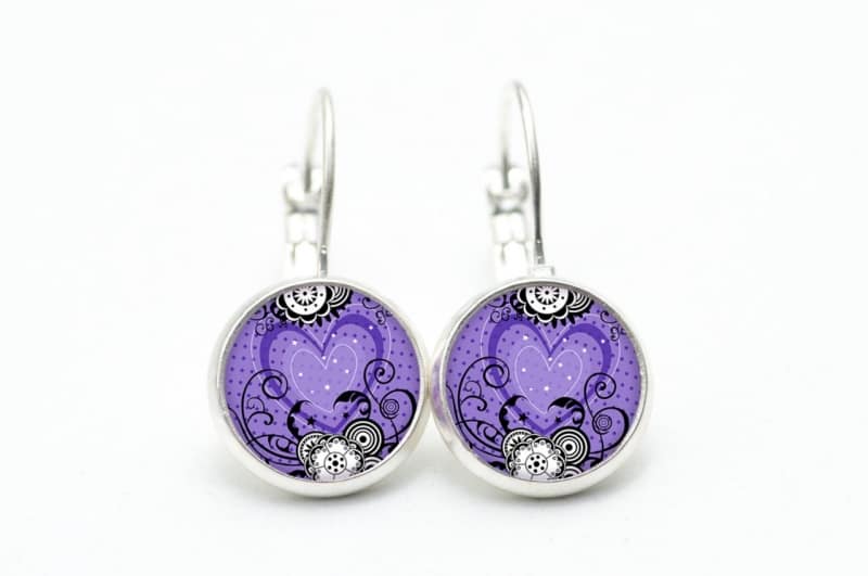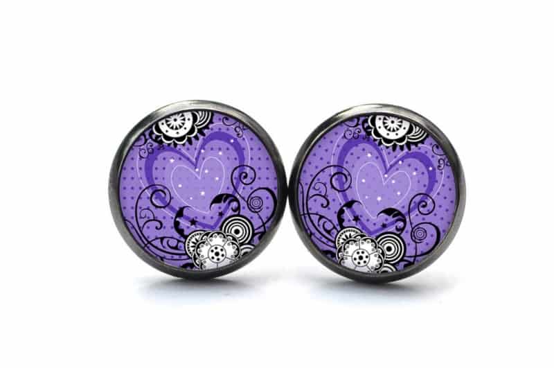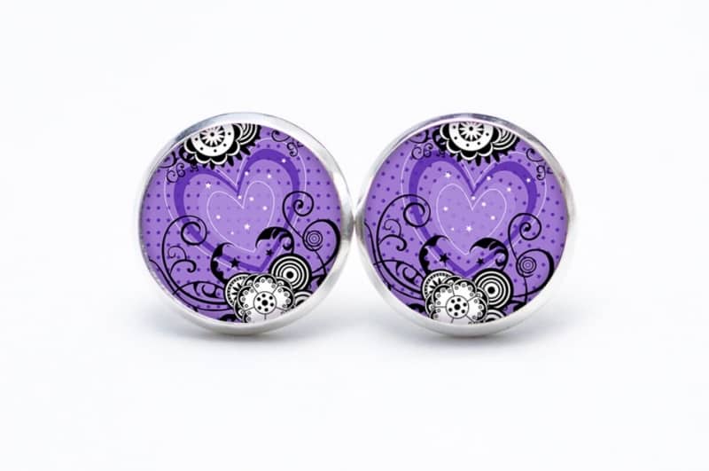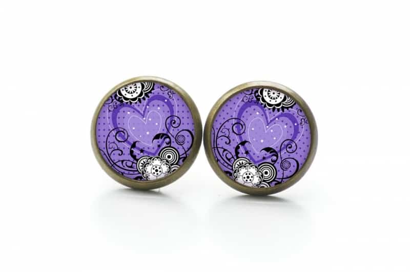 Druckknopf Ohrstecker Ohrhänger violettes Herz
