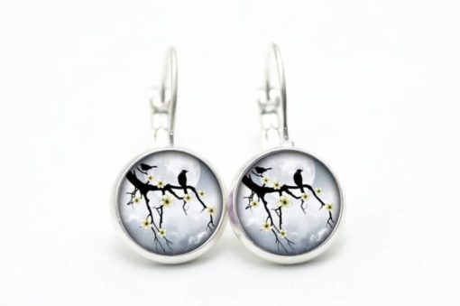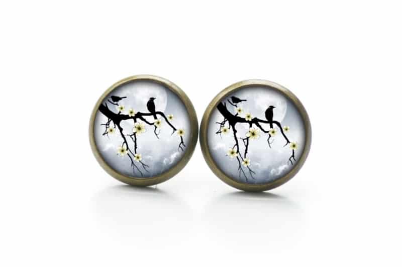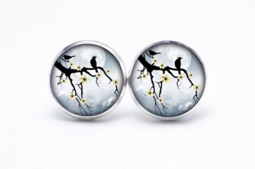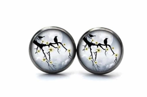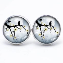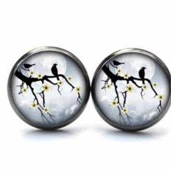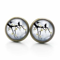 Druckknopf Ohrstecker Ohrhänger Vögel bei Nacht