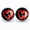 Druckknopf / Ohrstecker / Ohrhänger weiß Blumen auf blauem Hintergund