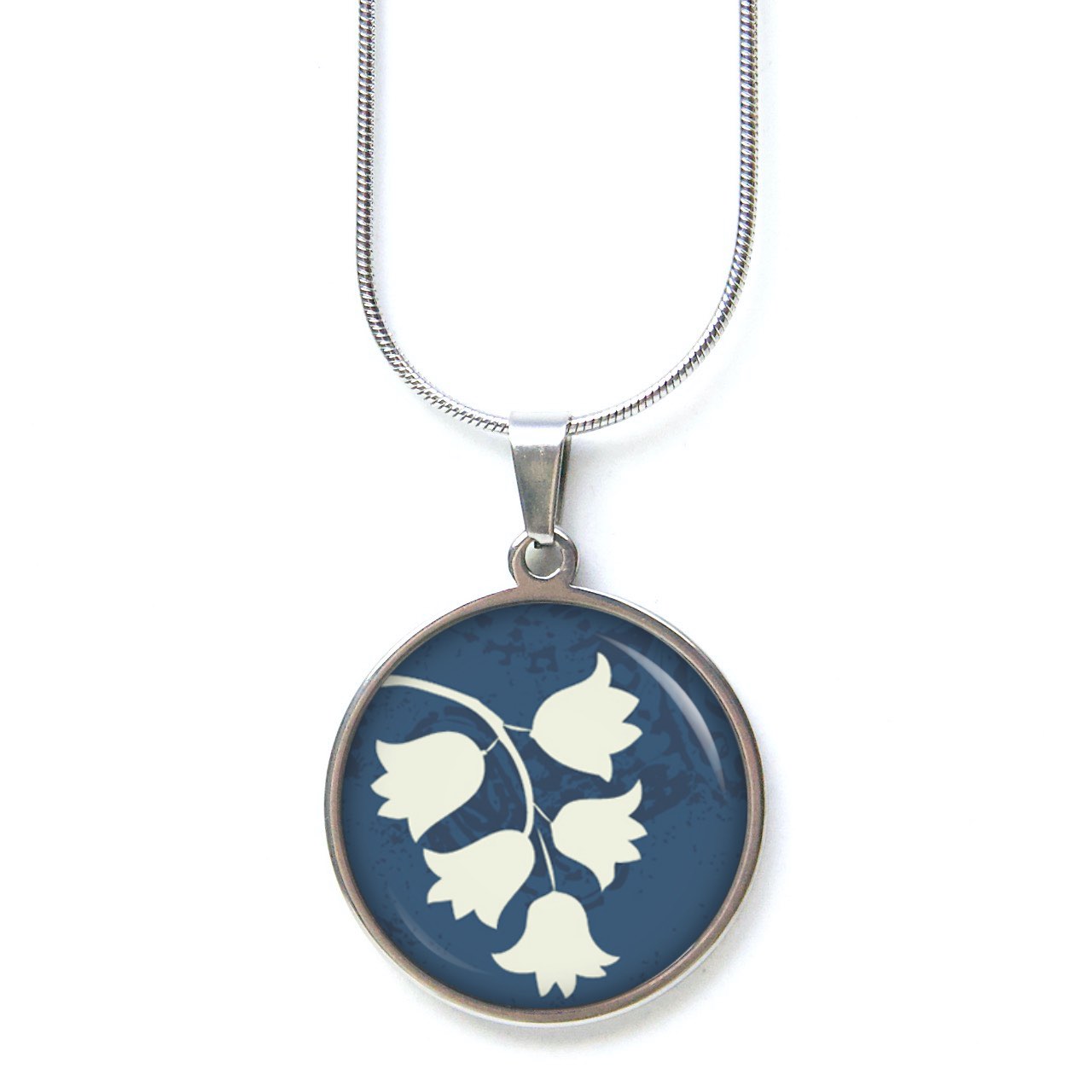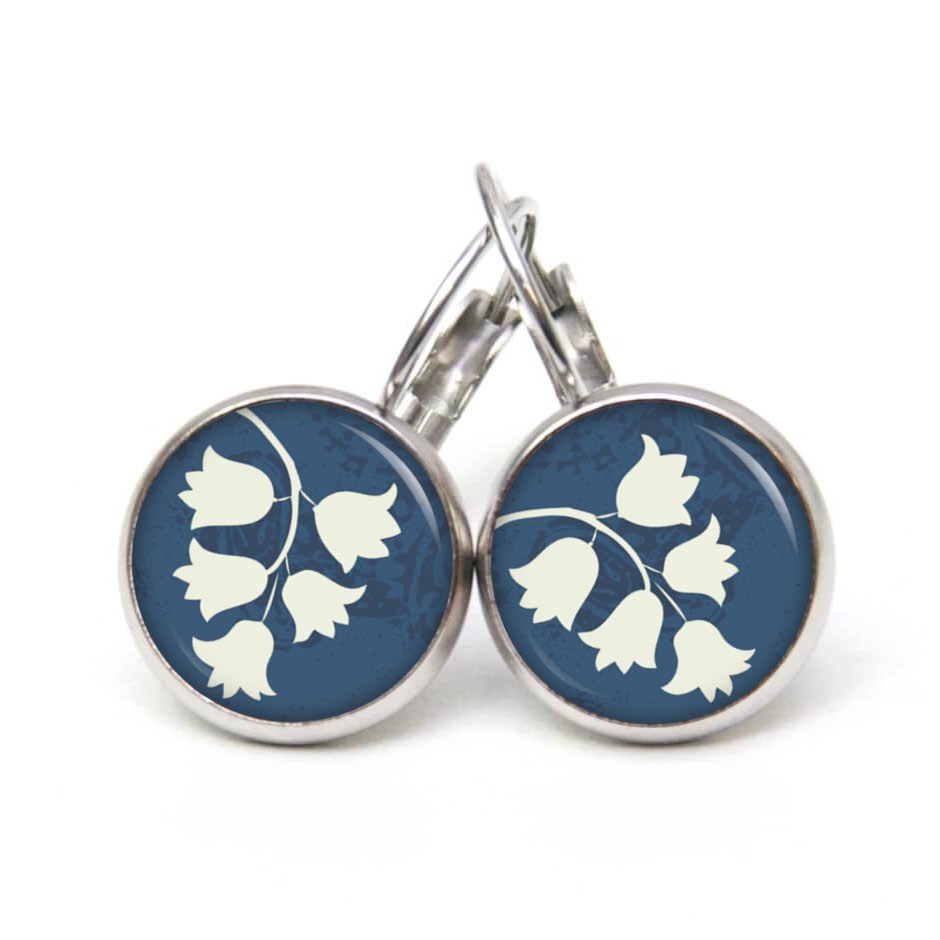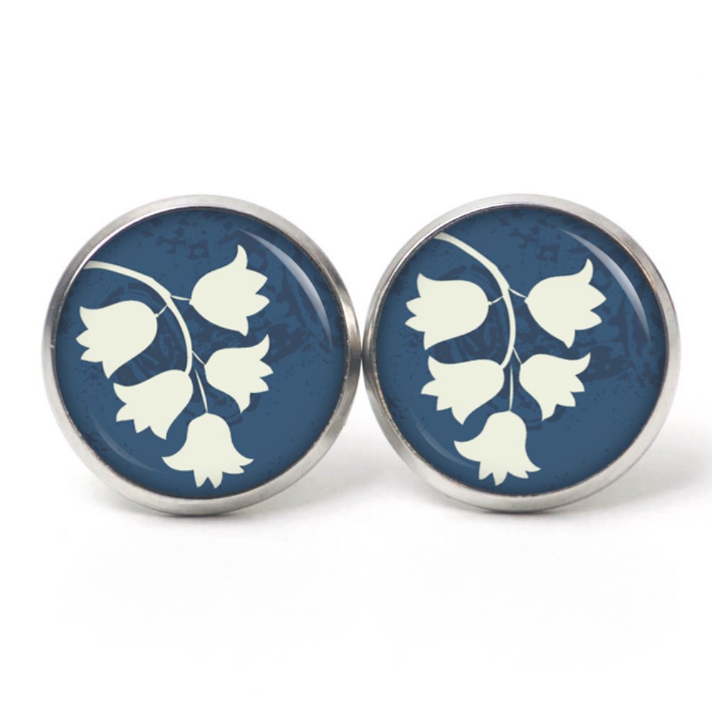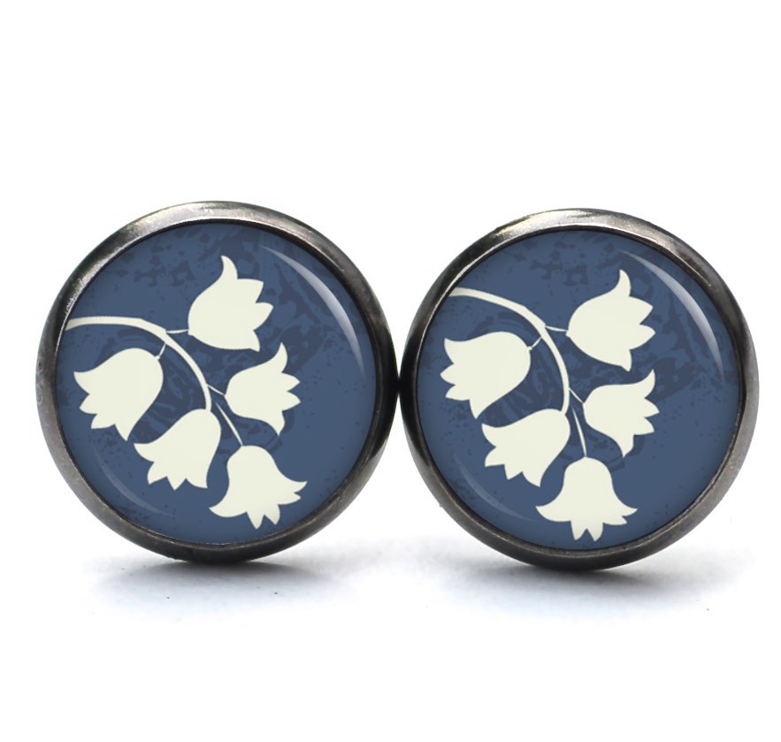 Ohrstecker, Ohrhänger, Clipse & Druckknopf – Motiv weiß blaue Glockenblumen – Schmuck aus Edelstahl