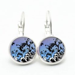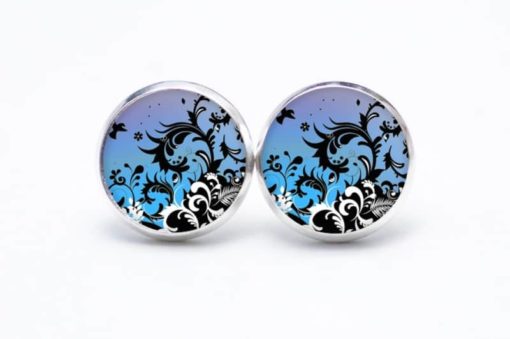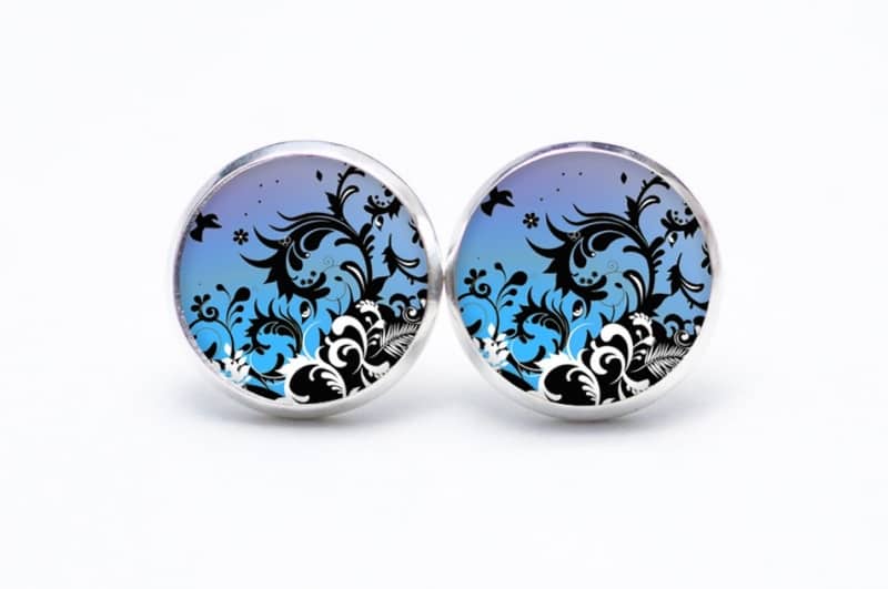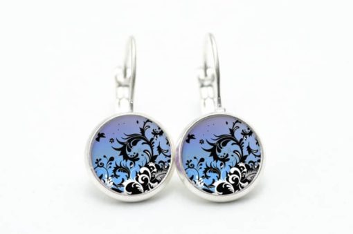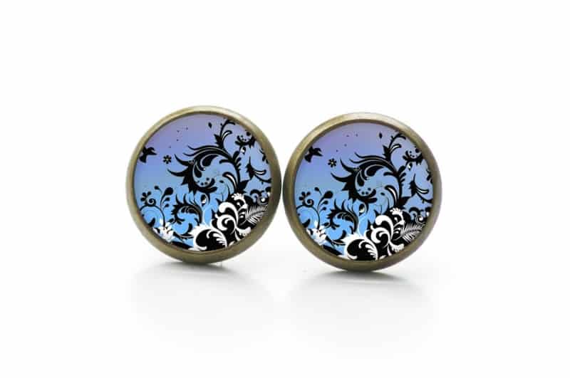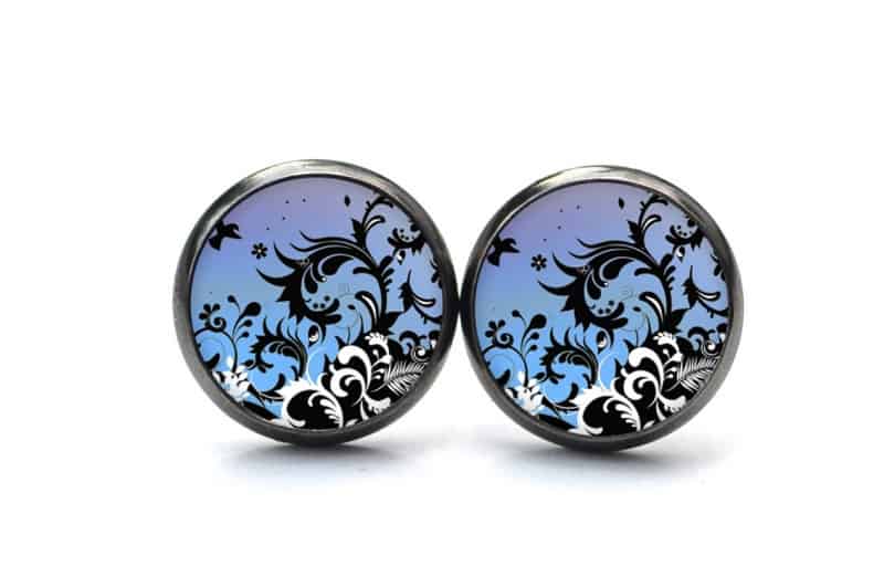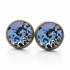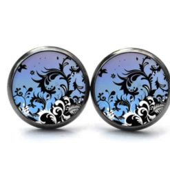 Druckknopf Ohrstecker Ohrhänger wildes Muster blau lila schwarz