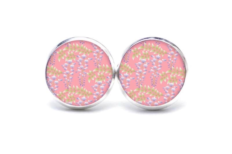 Druckknopf / Ohrstecker / Ohrhänger zart rosa Blumen