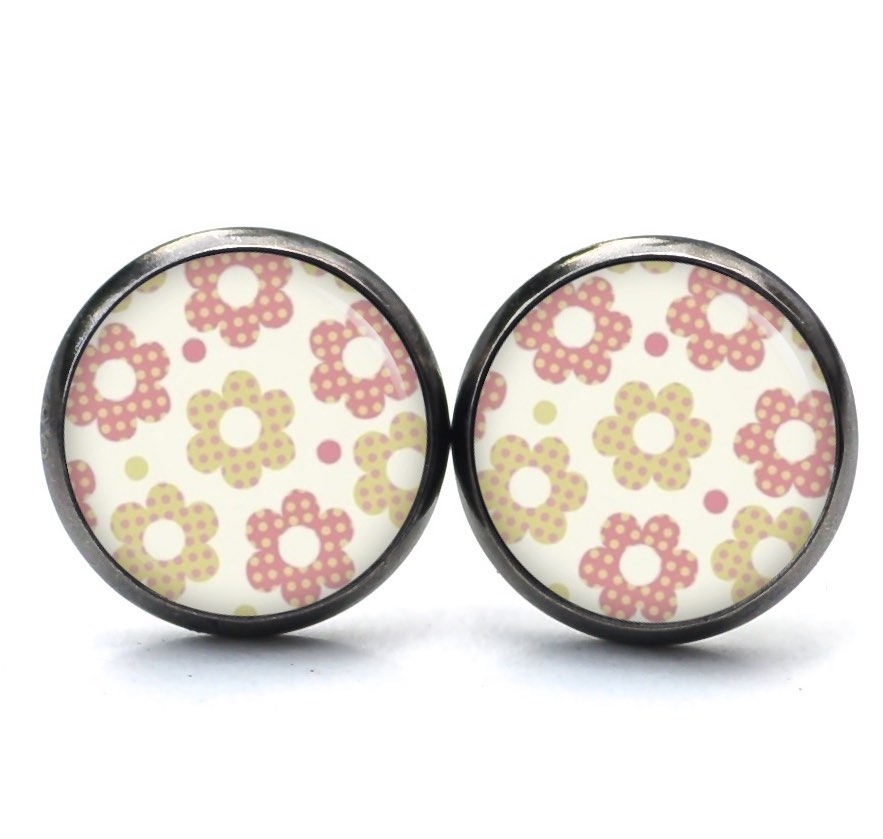 Druckknopf Ohrstecker Ohrhänger Clipse zarte Blumen in rosa und gold