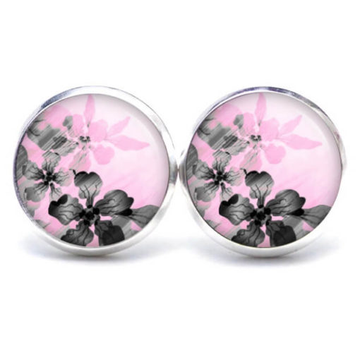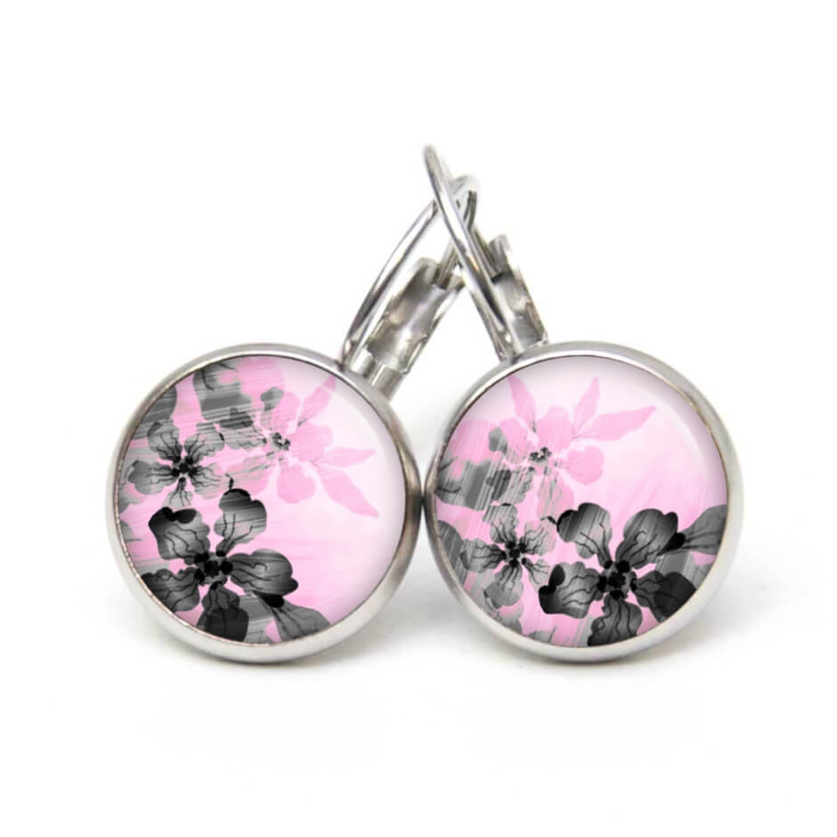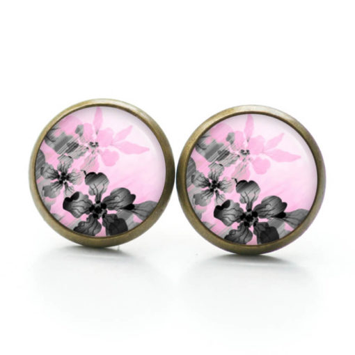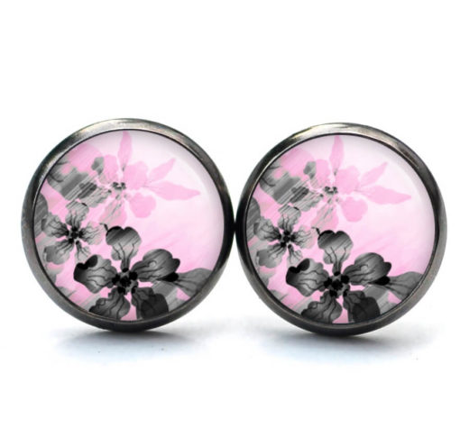Druckknopf Ohrstecker Ohrhänger Clipse zarte Blumen in rosa und grau