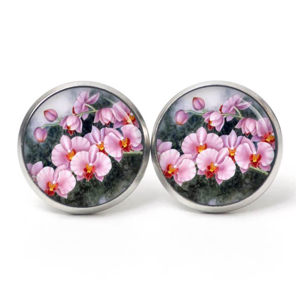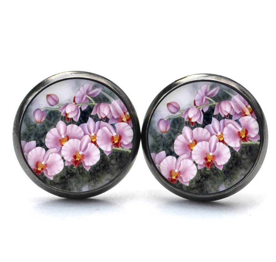 Druckknopf Ohrstecker Ohrhänger Clipse zarte rosa Orchideen
