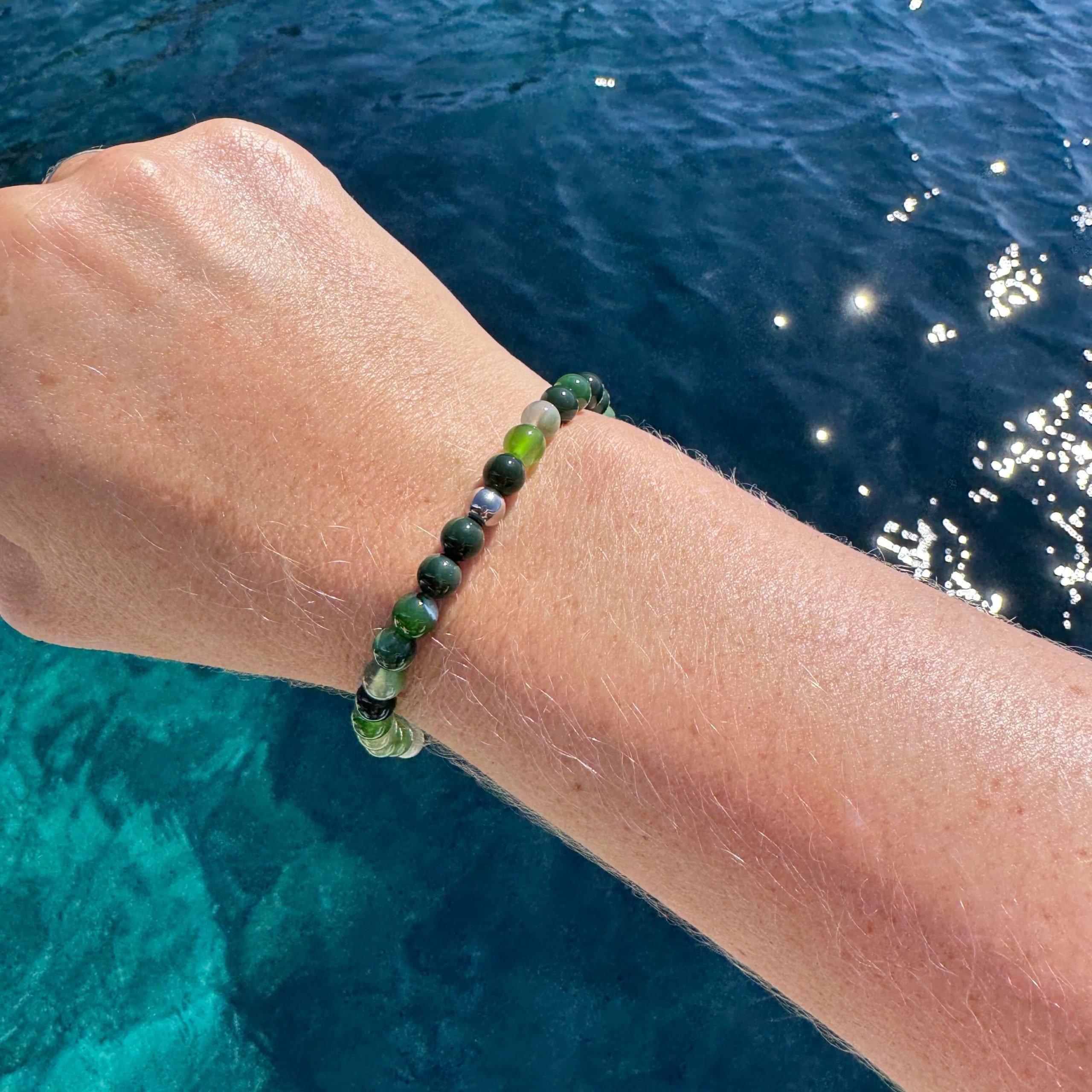 Dieses Perlenarmband mit grünen Achat Perlen ist ein zartes, feminines Accessoire, das jedem Outfit einen Hauch von Eleganz verleiht. Die Kombination aus grünen Achat Perlen lässt das Armband dezent schimmern und sorgt für einen stilvollen, edlen Look.