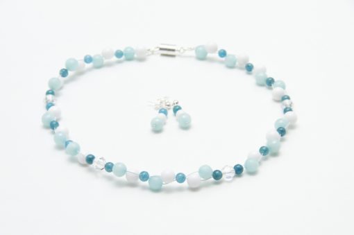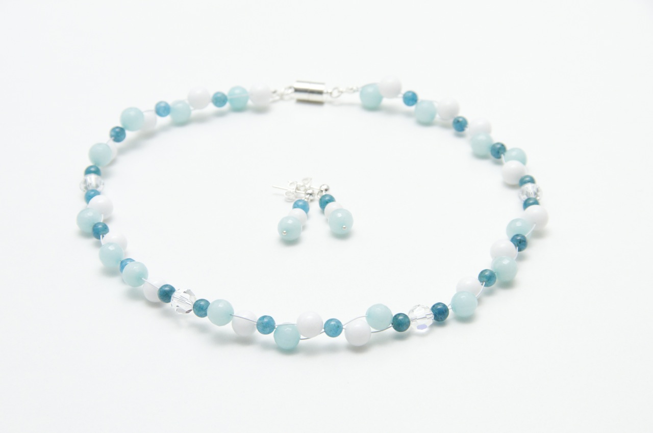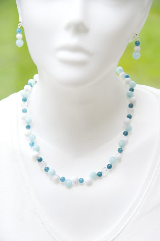 Ein wunderbar zartes Collier aus Bergkristall, Jade, Aquamarin und original CRYSTALLIZED™ -Swarovski Elements Crystal Pearl.