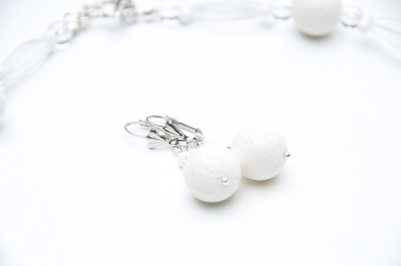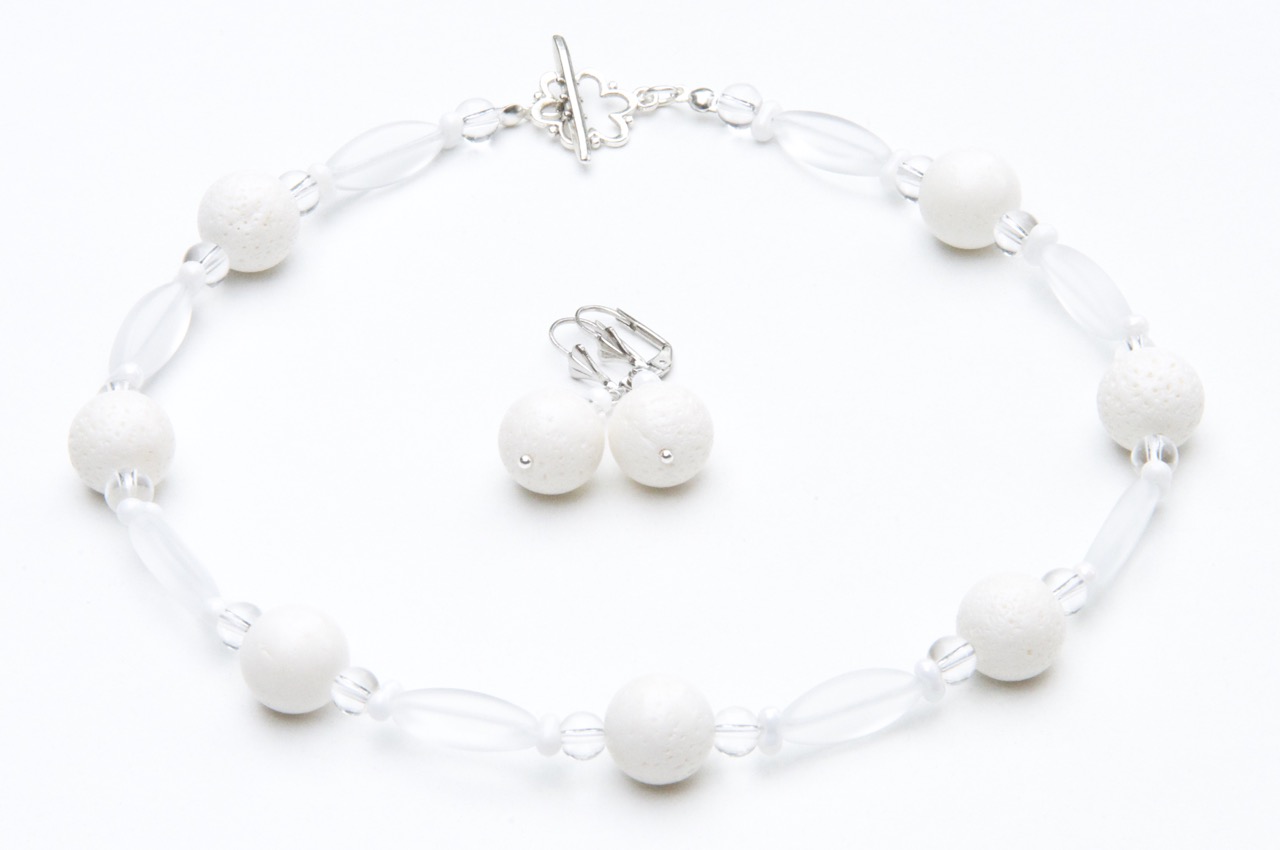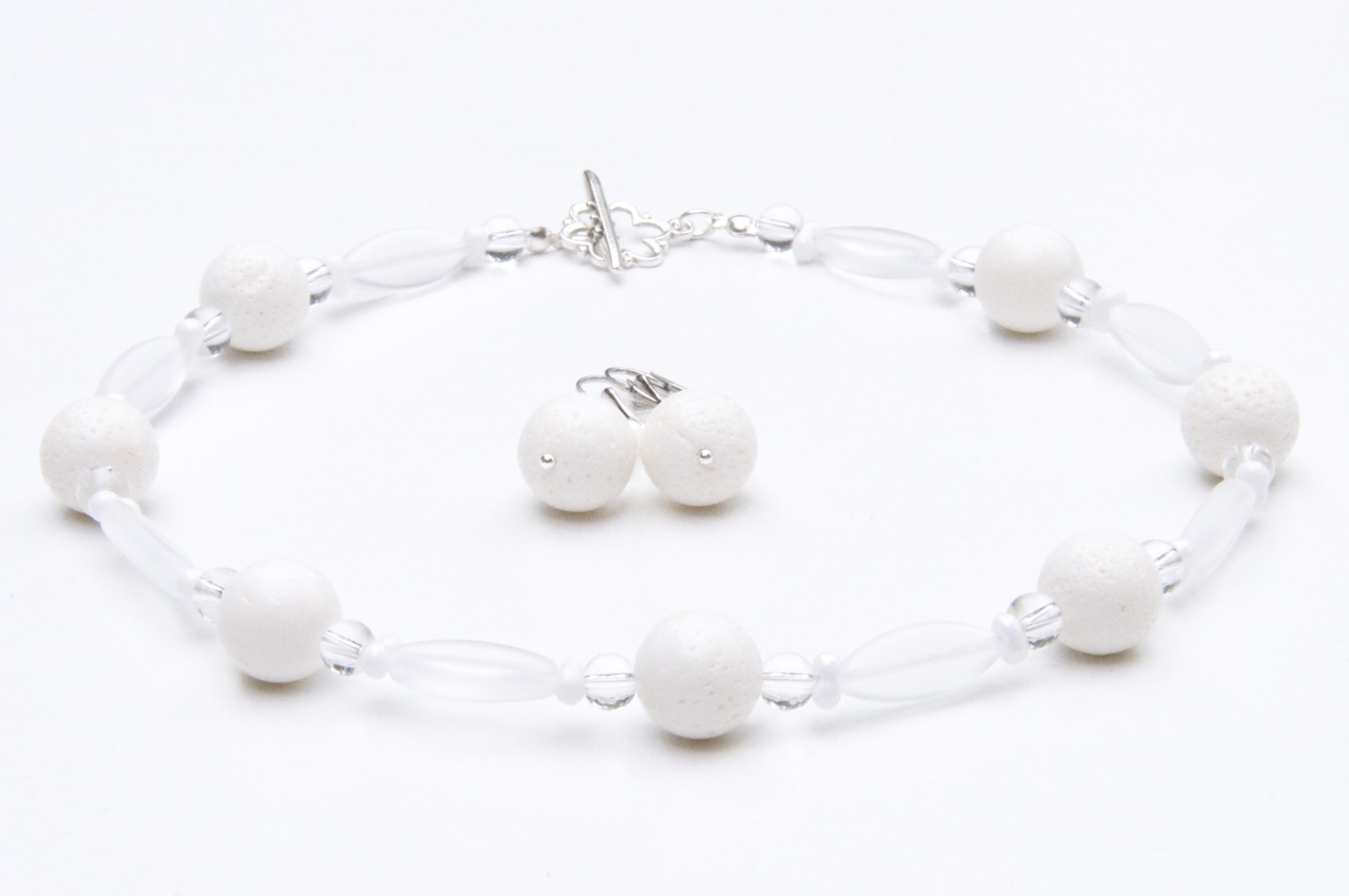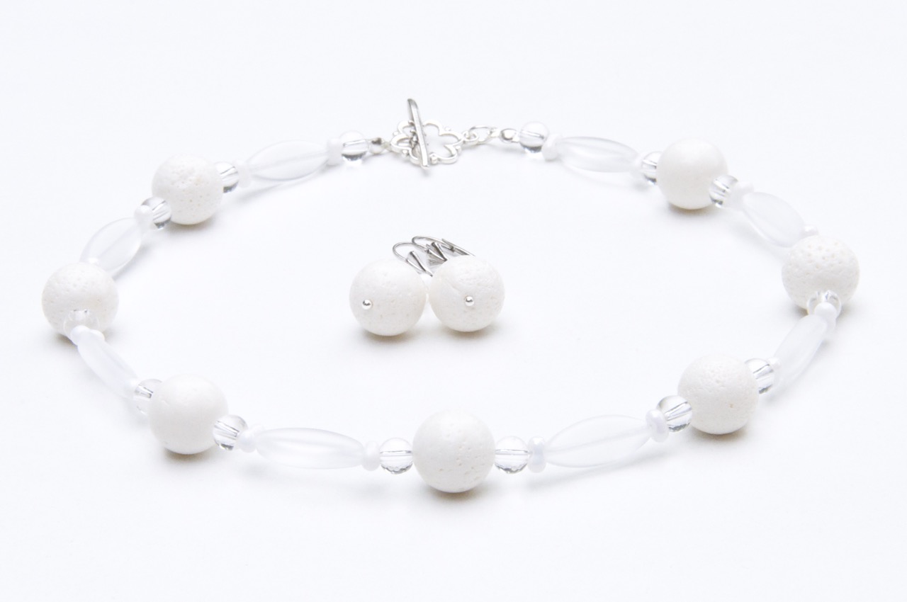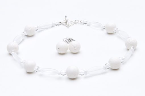 Jede Perlenkette im Shop ist ein Einzelstück und kommt mit den passenden Ohrringen.