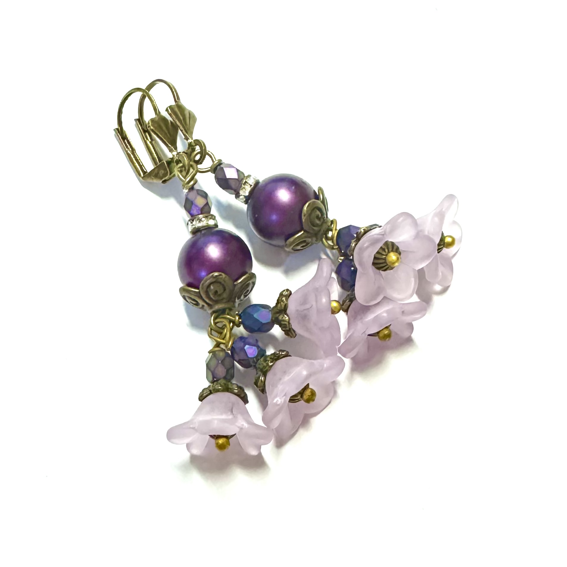 Romantische Blumen Ohrringe aus Bronze in Violett und Flieder boho