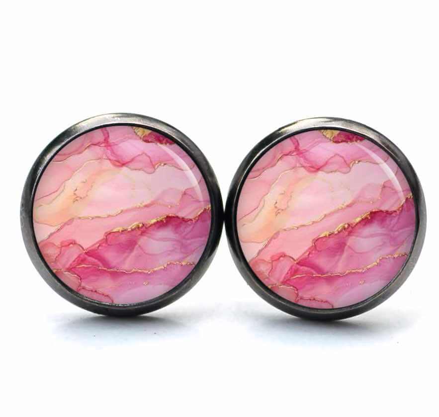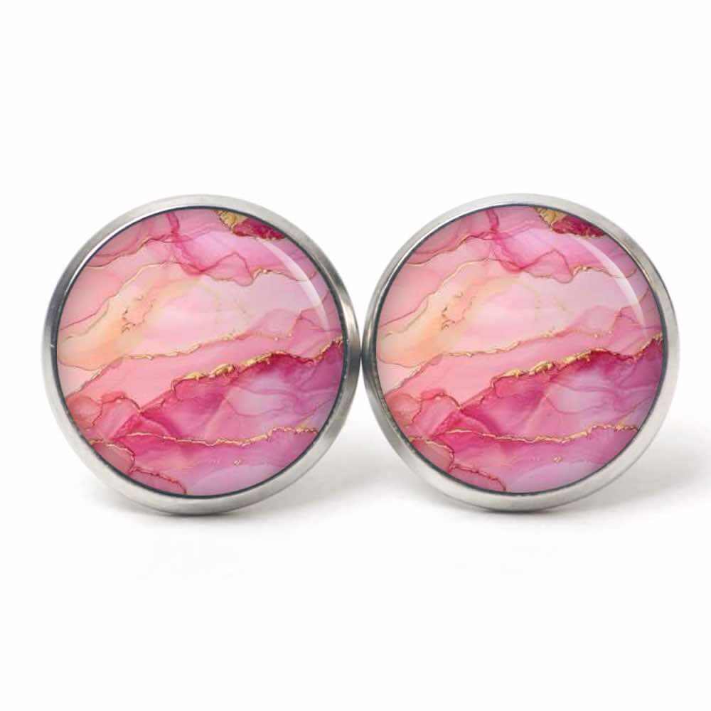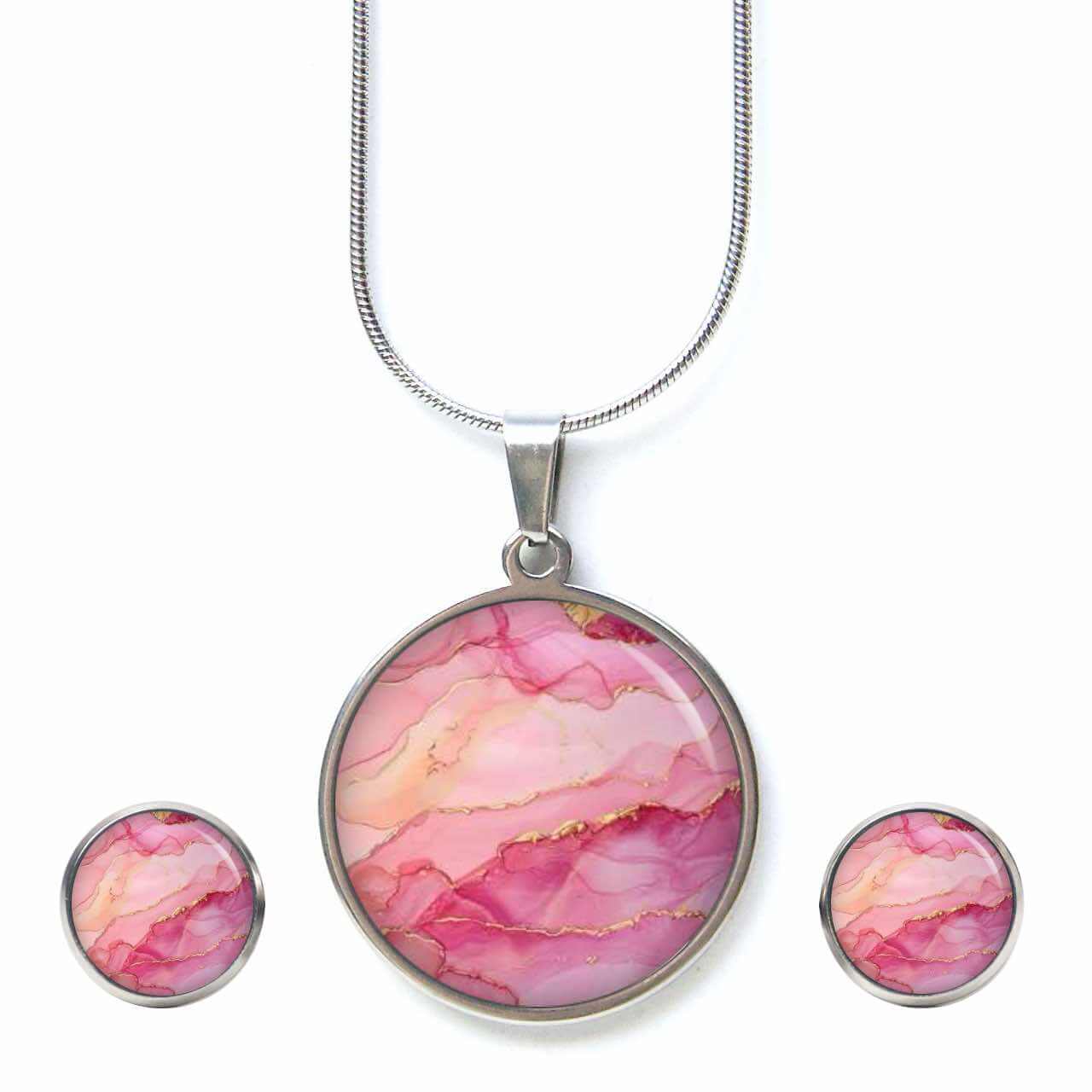 Rosa Marmor Schmuck Set – Kette mit Ohrsteckern – Edler Motiv Schmuck modern & zeitlos – Geschenk für Frauen