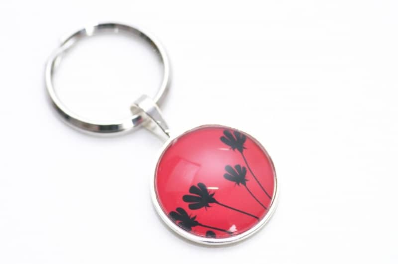 Schlüsselanhänger 3 Blümchen Rot/Schwarz