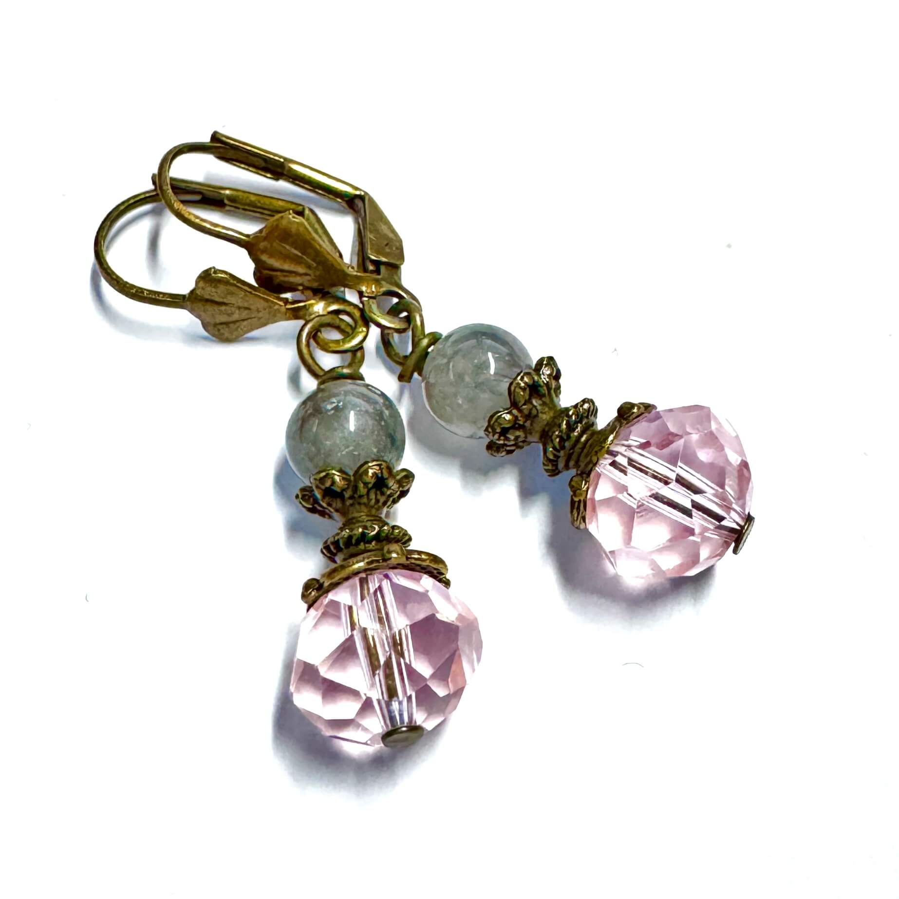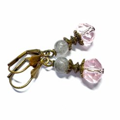 Wunderschöne Ohrringe in Bronze mit einer Rosa Glasschliffperle und einer grauen Jadeperle.