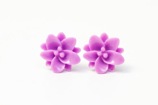 Wunderschöne Blumen Ohrstecker in der Farbe Lila aus Kunstharz.
