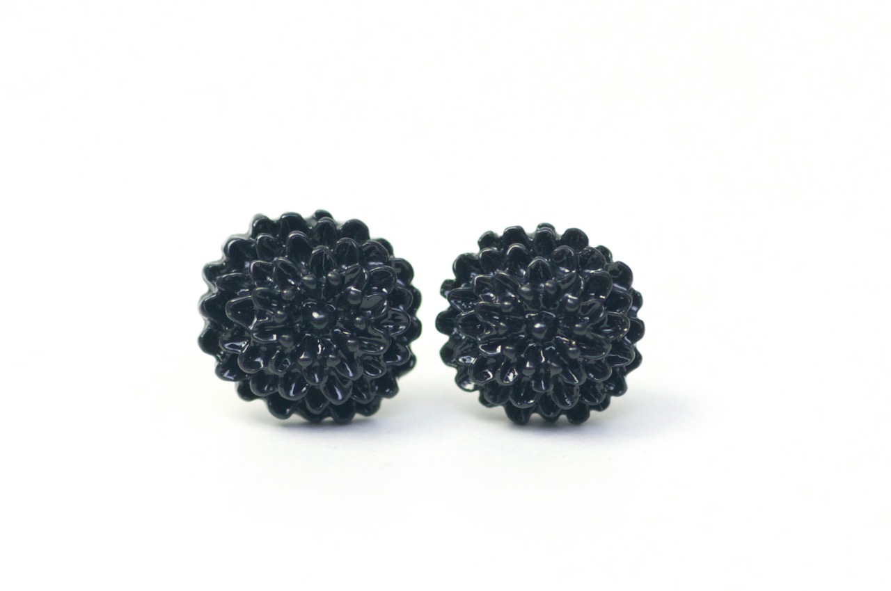 Wunderschöne Blumen Ohrstecker in der Farbe Schwarz aus Kunstharz.